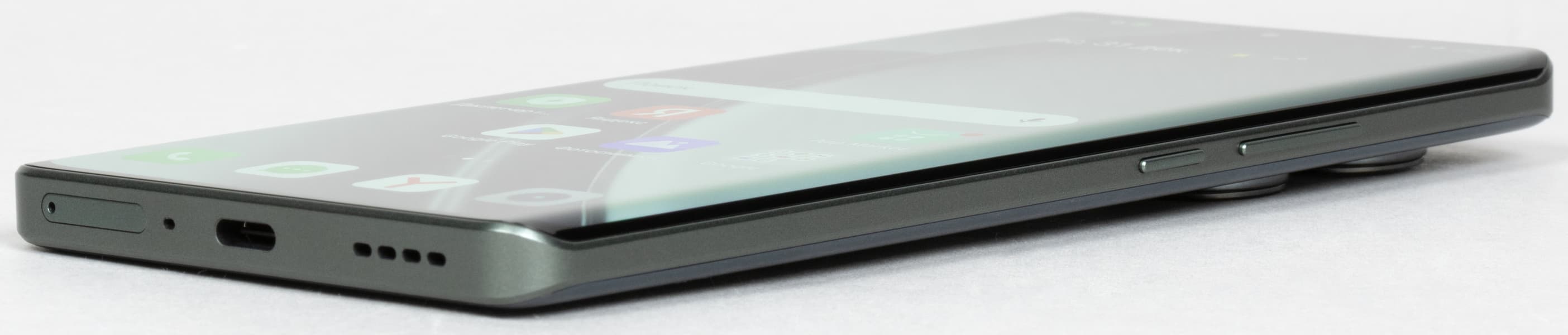 Сканер отпечатка пальца находится под нижней частью стекла экрана. Сенсор оптический, расположен низко, это решение менее удобное и менее быстрое, чем сканер в боковой кнопке.