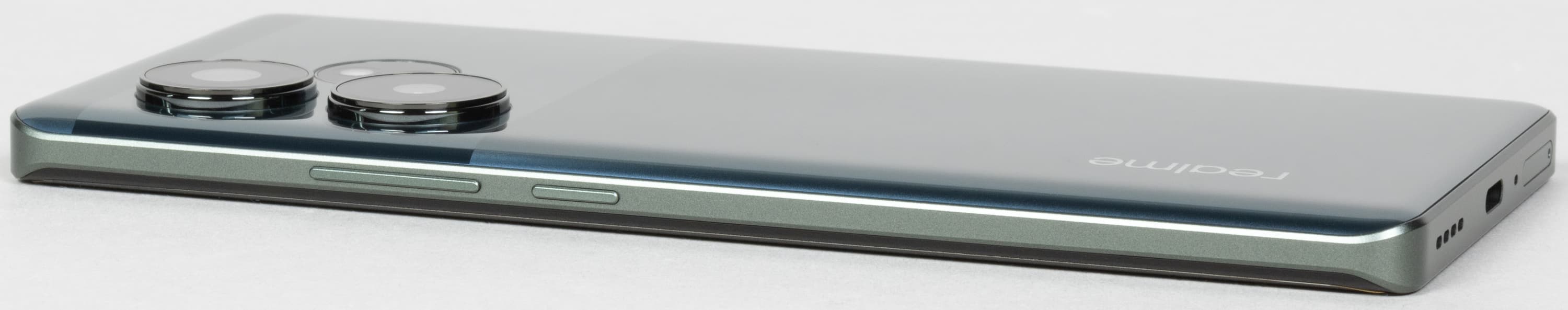 Корпус Realme GT 6T выполнен в обтекаемом дизайне с загнутыми фронтальной и тыльной панелями и зауженными боками. Однако профиль у боковин не округлый, а как бы срезанный, есть достаточно плоская часть, за которую аппарат можно крепко удерживать в ладони. Боковая рамка не притворяется металлической, но зато она матовая и не такая уж скользкая.