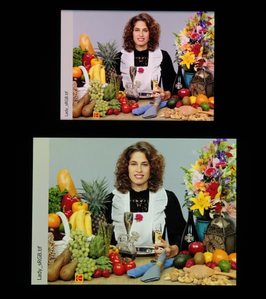 При сильном изменении условий освещенности подстройка цветового баланса выражена слабо, поэтому с нашей точки зрения эта функция не работает так, как нужно. Отметим, что сейчас сложившимся стандартом является калибровка устройств отображения к точке белого в 6500 К, но в принципе, коррекция под цветовую температуру внешнего света может принести пользу, если хочется добиться лучшего соответствия изображения на экране с тем, что видно на бумаге (или на любом носителе, на котором цвета формируются за счет отражения падающего света) в текущих условиях.