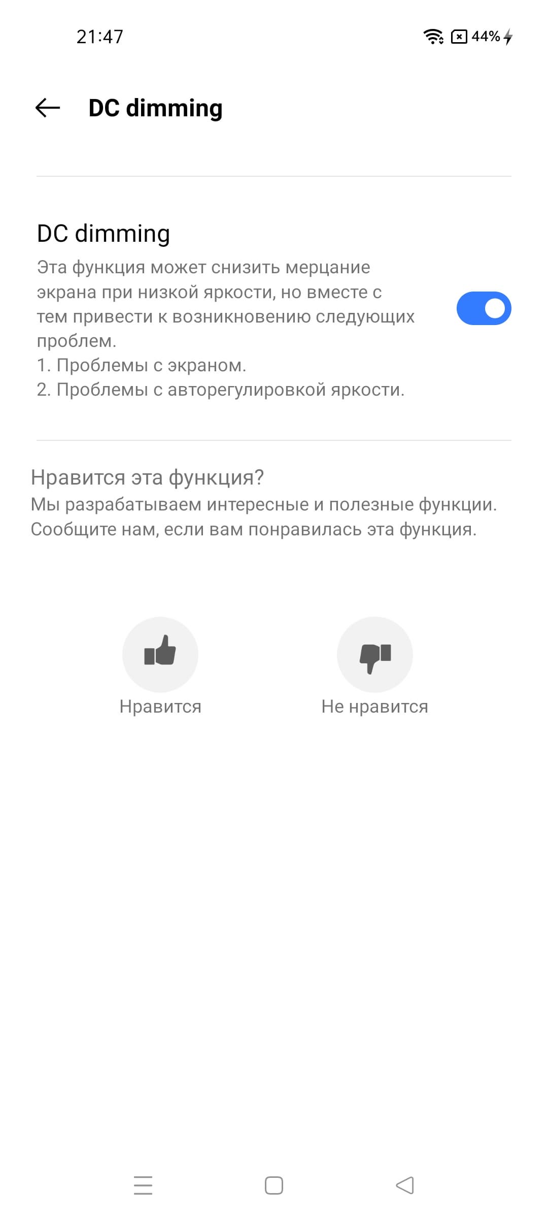 Те, кому кажется, что такое мерцание вызывает дискомфорт, могут попробовать включить функцию с названием DC Dimming. Также в настройках экрана можно включить режим с повышенной до 120 Гц частотой обновления: