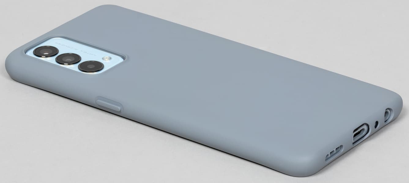 Можно воспользоваться комплектным чехлом. Он не прозрачный, а сплошной, матовый, нейтрального серого цвета и с приятной на вид и на ощупь поверхностью soft-touch. Чехол тонкий, он не портит изящных форм тонкого корпуса.