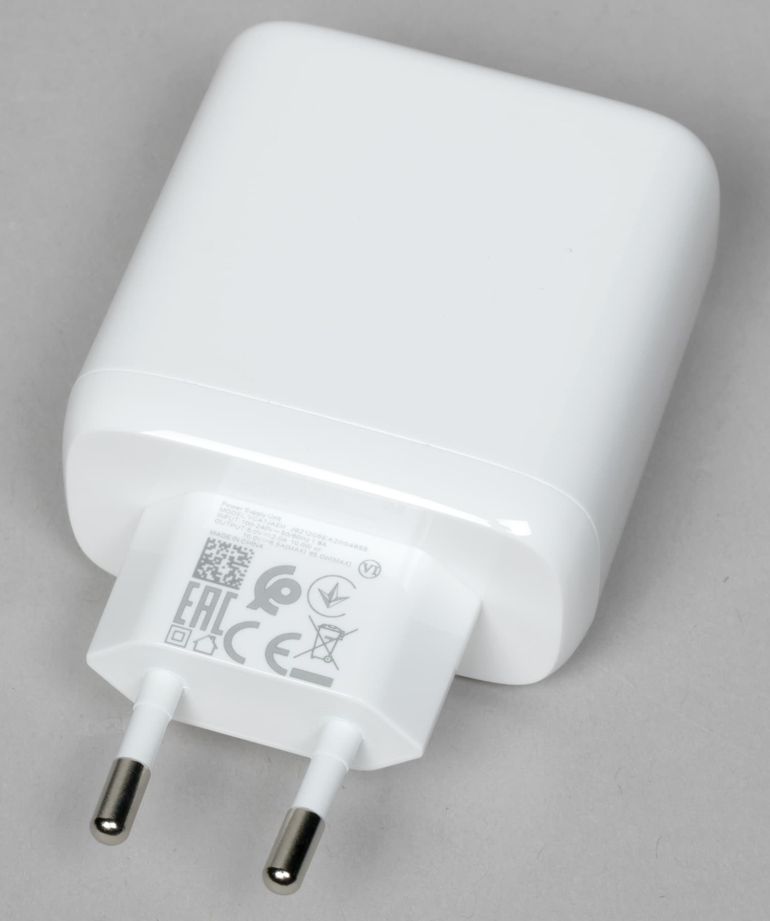 В комплекте со смартфоном идет защитный чехол, соединительный кабель USB-C и зарядное сетевое устройство с выходной мощностью 65 Вт.