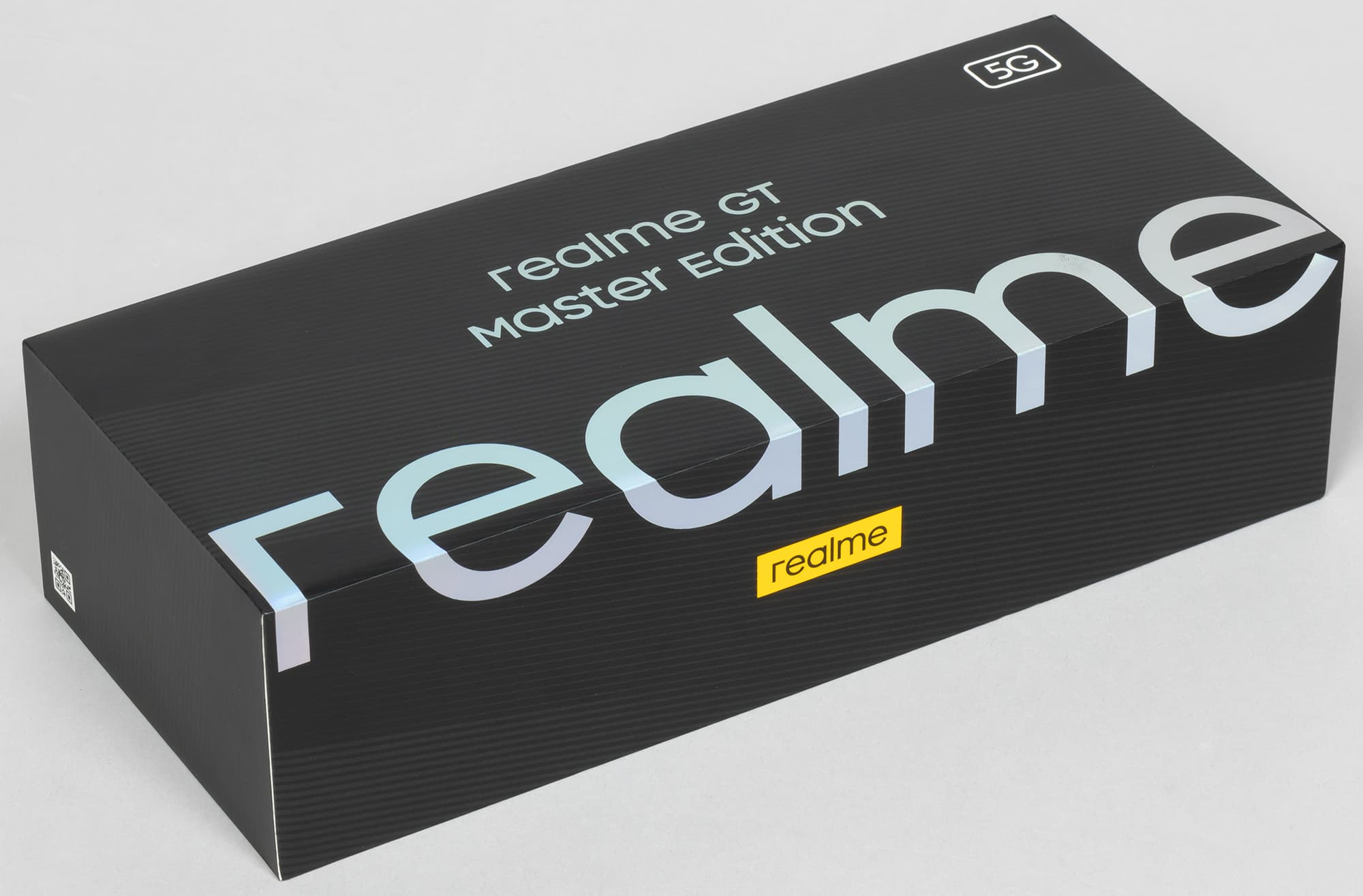 Realme GT Master Edition поставляется в точно такой же стильно оформленной картонной коробке с увеличенными примерно на четверть от стандартных размерами, как у флагмана Realme GT.