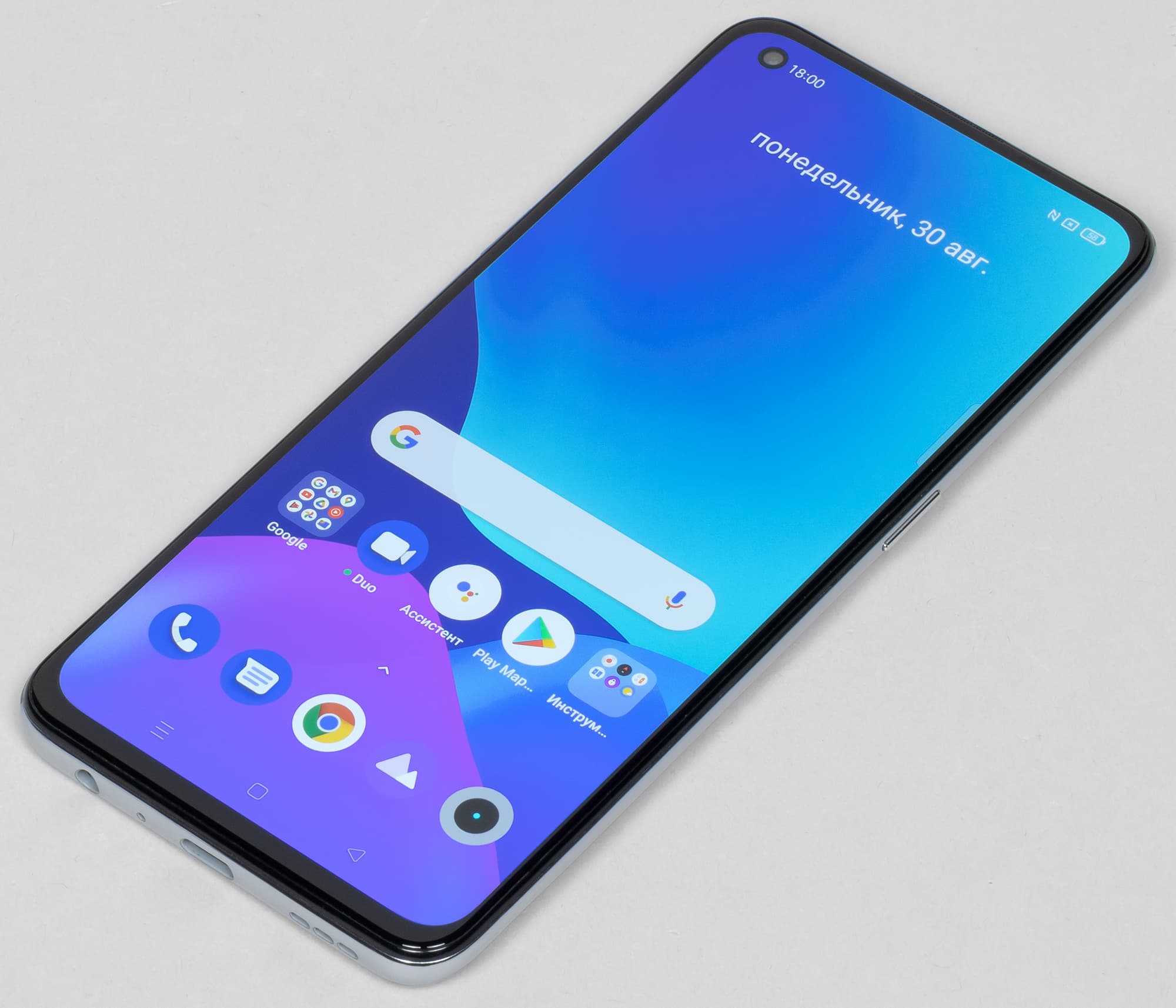 Realme GT Master Edition не только смотрится изящно, он также комфортен для руки. Аппарат очень тонкий и очень легкий, особенно по теперешним меркам, когда уже трудно найти мощный мобильный аппарат массой менее 200 граммов. Никаких загнутых скользких и бликующих краев стекла, никаких заостренных боковых граней, — все сделано с умом.
