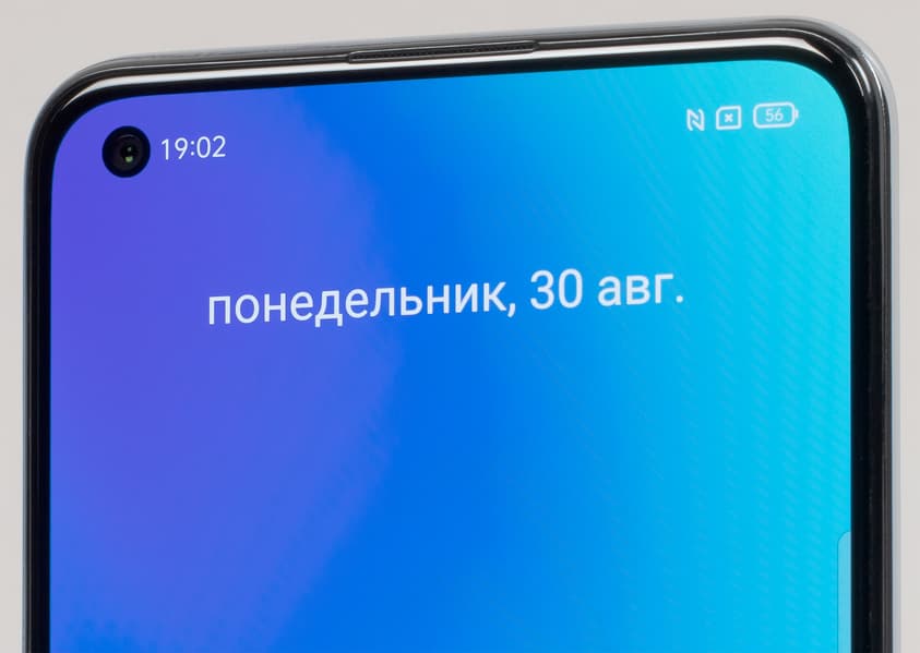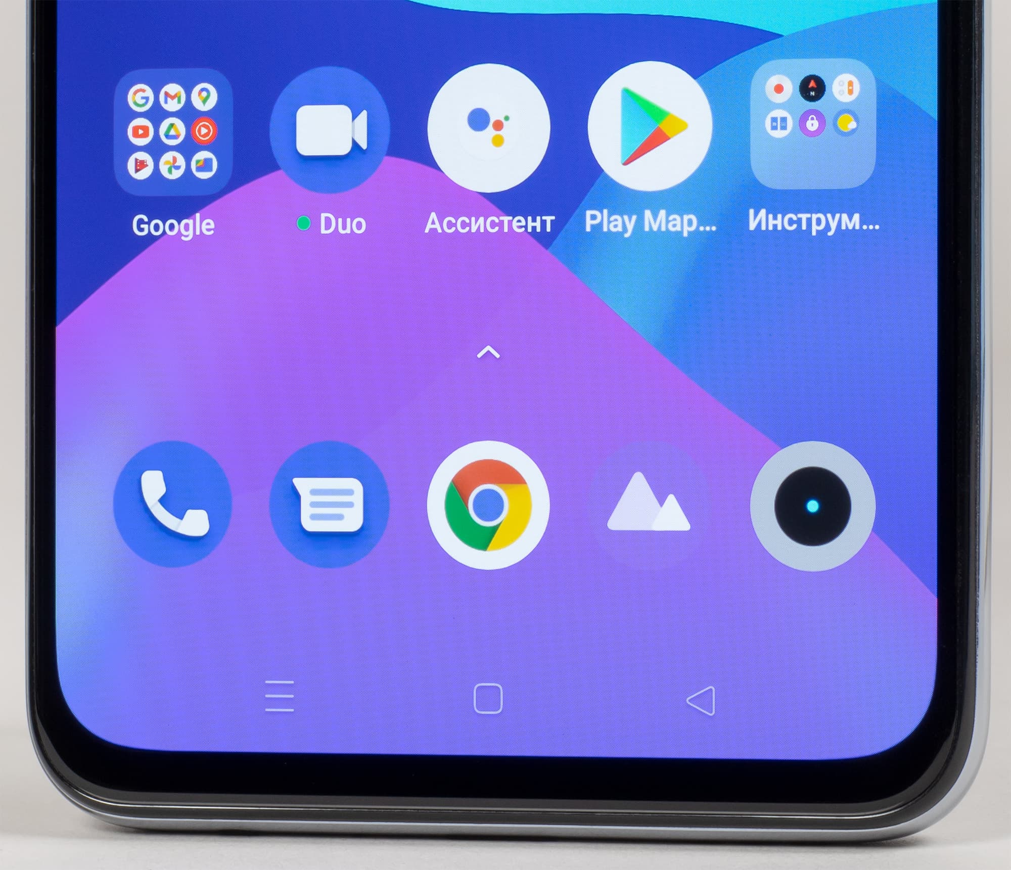 Фронтальная камера спрятана за круглым вырезом в углу матрицы экрана. Светодиодного индикатора событий нет.