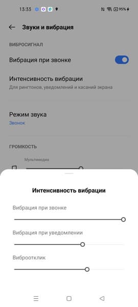 Голос собеседника в динамике громкий и разборчивый. Вибромотор средней мощности, интенсивность вибраций можно настраивать с помощью ползунка в настройках.