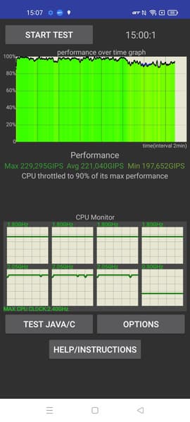 Тестирование традиционно проводилось на обычном уровне энергопотребления без использования функций энергосбережения, хотя таковые в аппарате имеются. Условия тестирования: выставлен минимальный комфортный уровень яркости (примерно 100 кд/м²). Тесты: беспрерывное чтение в программе Moon+ Reader (со стандартной, светлой темой); беспрерывный просмотр видео в HD-качестве (720р) через домашнюю сеть Wi-Fi; игра Injustice 2 с автонастройками графики.