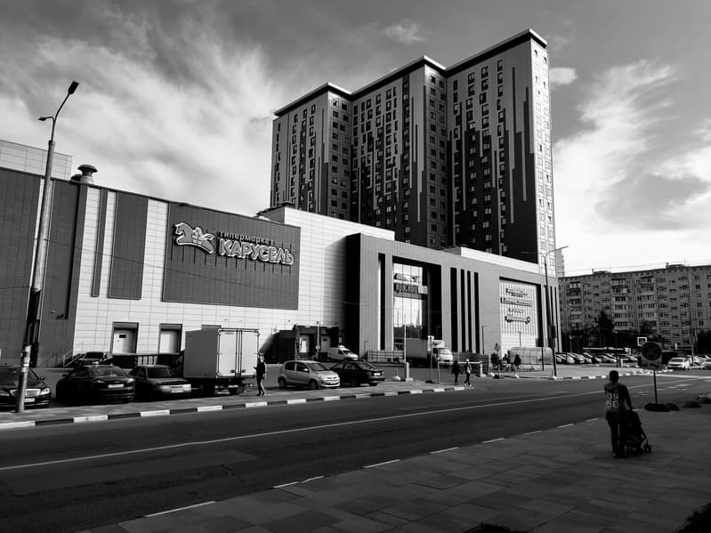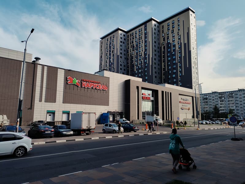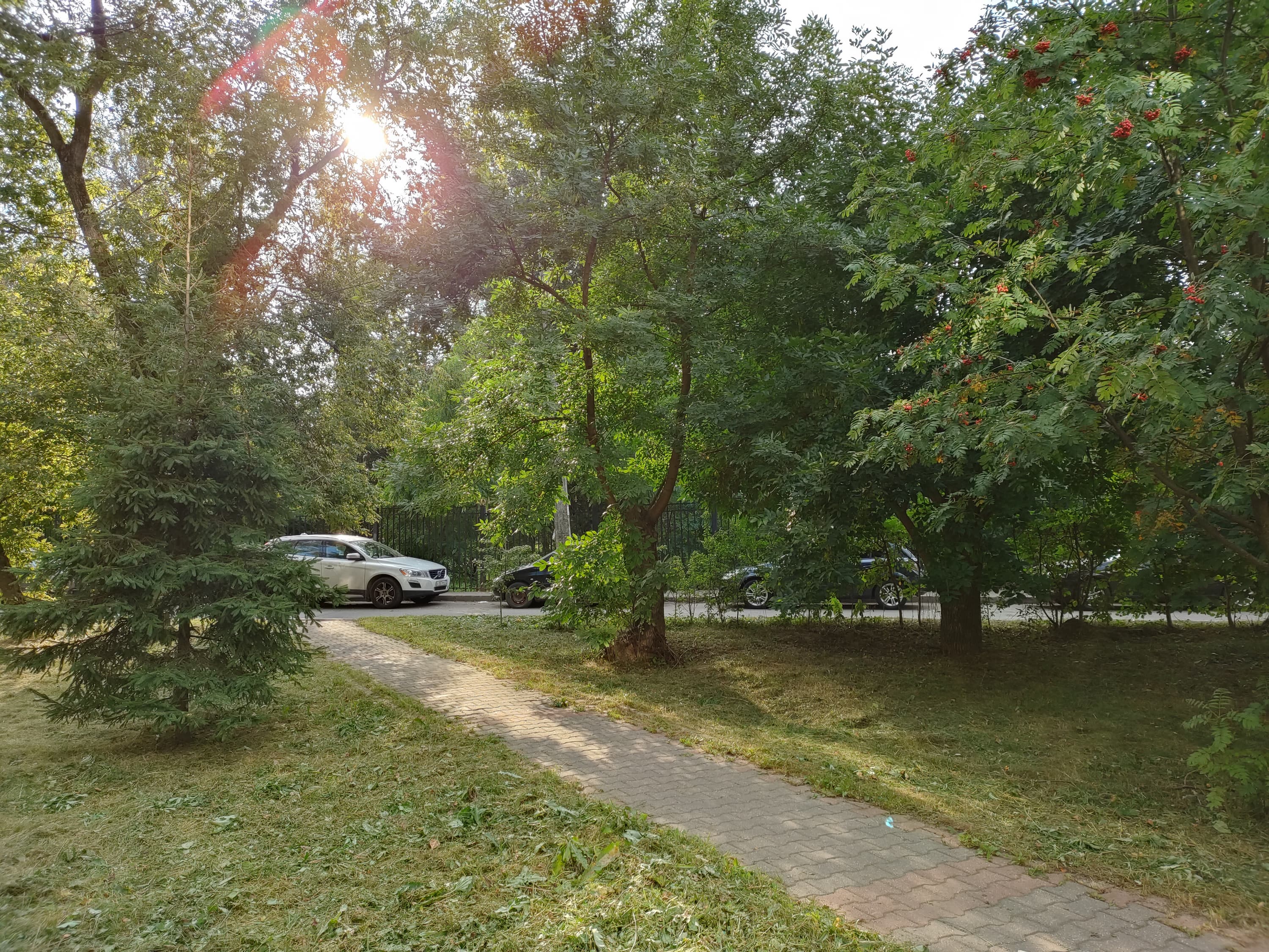Основной 64-мегапиксельный модуль по умолчанию снимает в 16 Мп с функцией объединения пикселей, но можно переключиться на съемку в полном разрешении 64 Мп. Фазовый PDAF-автофокус во всех случаях ведет себя адекватно. Оптического стабилизатора нет. Смена разрешения осуществляется максимально быстро — прямо на экране видоискателя.