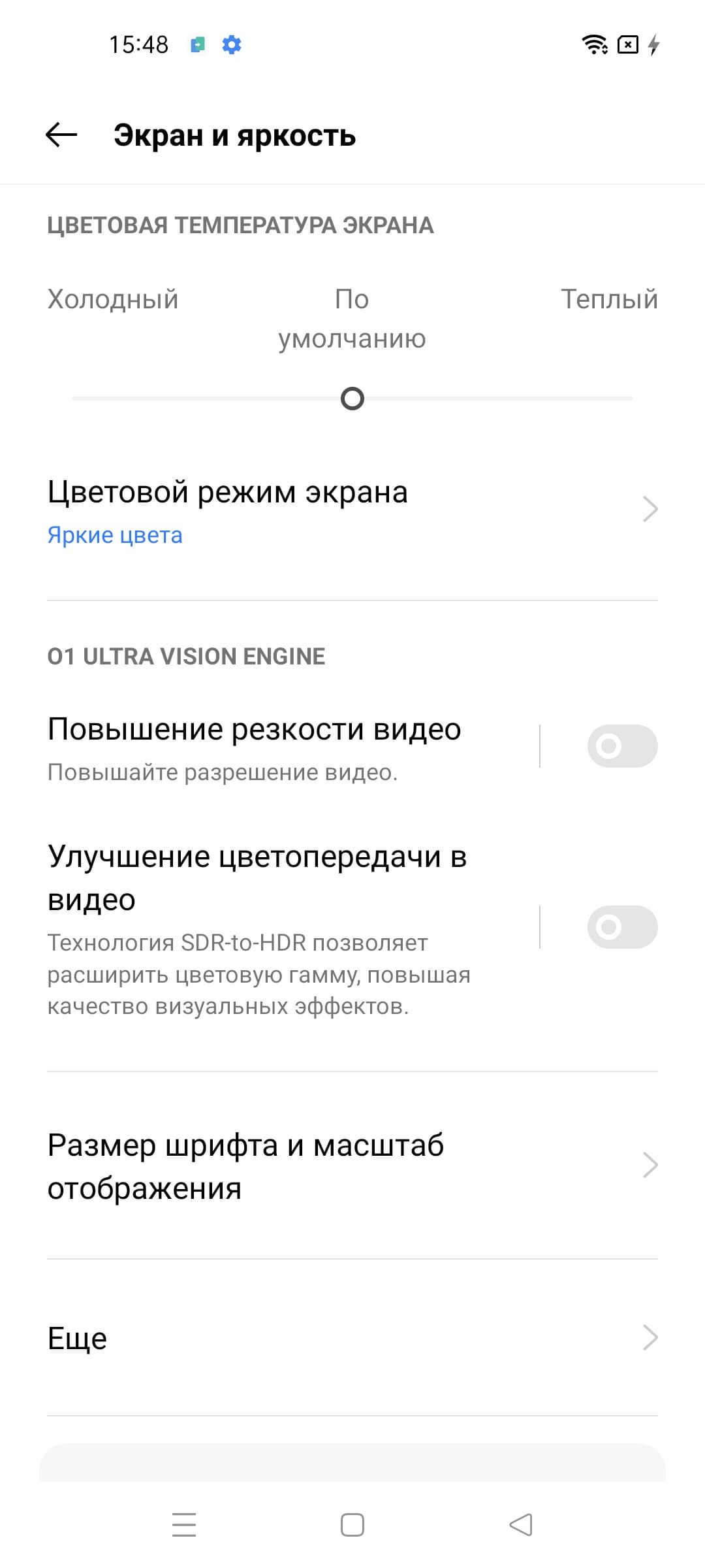 Фотография выше получена для профиля Яркие цвета в настройках экрана, который выбран по умолчанию. Профилей всего три: