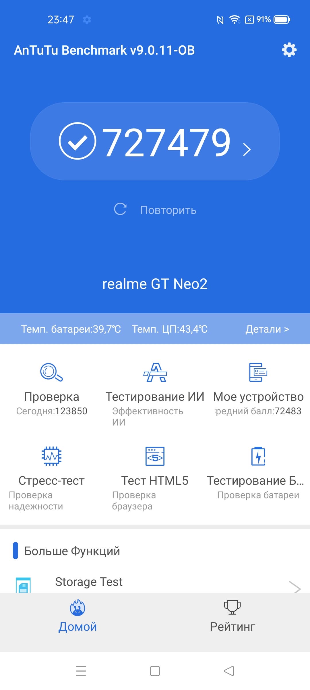 В официальной российской рознице Realme GT Neo 2 сейчас предлагается в конфигурации 8/128 ГБ с поддержкой 5G за 40-45 тысяч рублей (до Нового года была скидка до 37 тысяч). Этот красивый стильно оформленный смартфон с мощной аппаратной платформой топового уровня, огромным AMOLED-экраном с частотой 120 Гц, отличной автономностью, ярко звучащими стереодинамиками и полным набором коммуникационных модулей получился очень достойным. С ходу в оснастке не хватает, пожалуй, только модуля с оптическим зумом, да и качество съемки на широкий угол уже пора бы подтянуть, но основная и фронтальная камера снимают очень хорошо, видео также отменное.