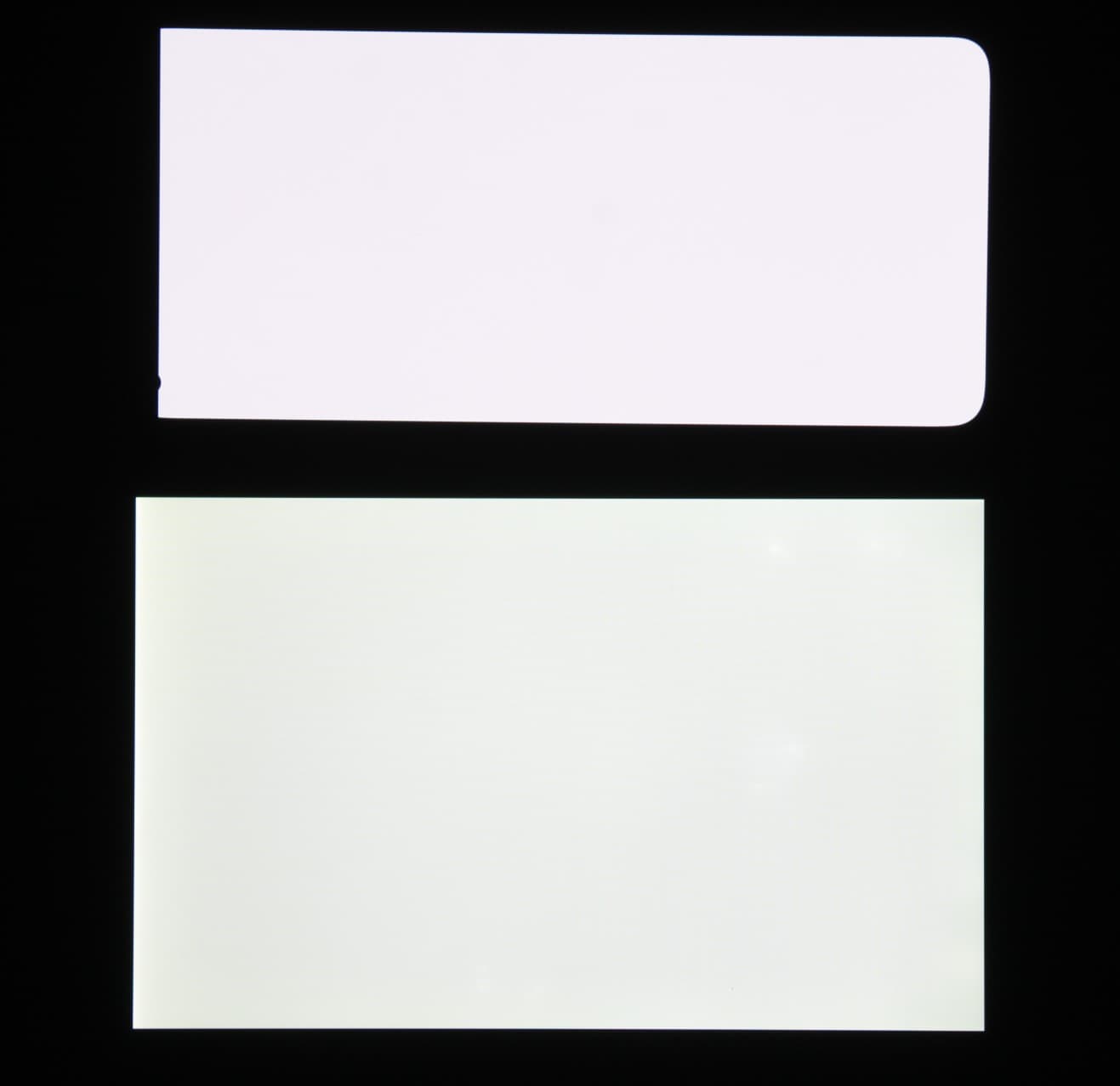 Яркость под углом у обоих экранов заметно уменьшилась (чтобы избежать сильного затемнения, выдержка увеличена в сравнении с предыдущими фотографиями), но в случае Realme GT Neo 2 падение яркости меньше. В итоге при формально одинаковой яркости экран Realme GT Neo 2 визуально выглядит гораздо более ярким (в сравнении с ЖК-экранами), так как на экран мобильного устройства часто приходится смотреть как минимум под небольшим углом.