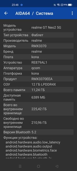 Основные характеристики Realme GT Neo 2 (модель RMX3370)
