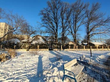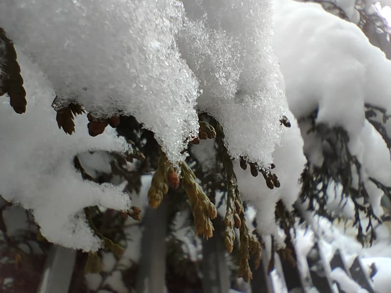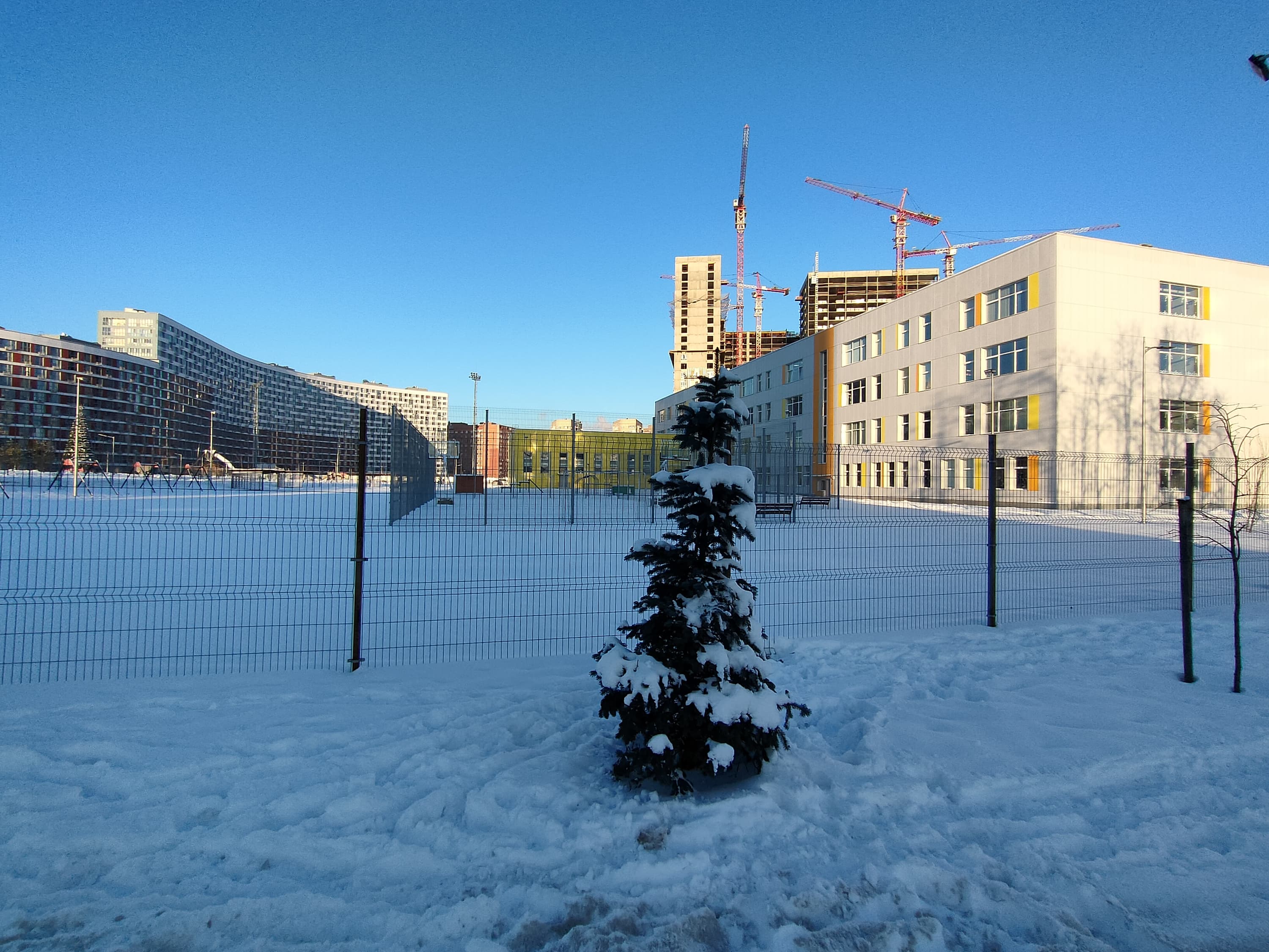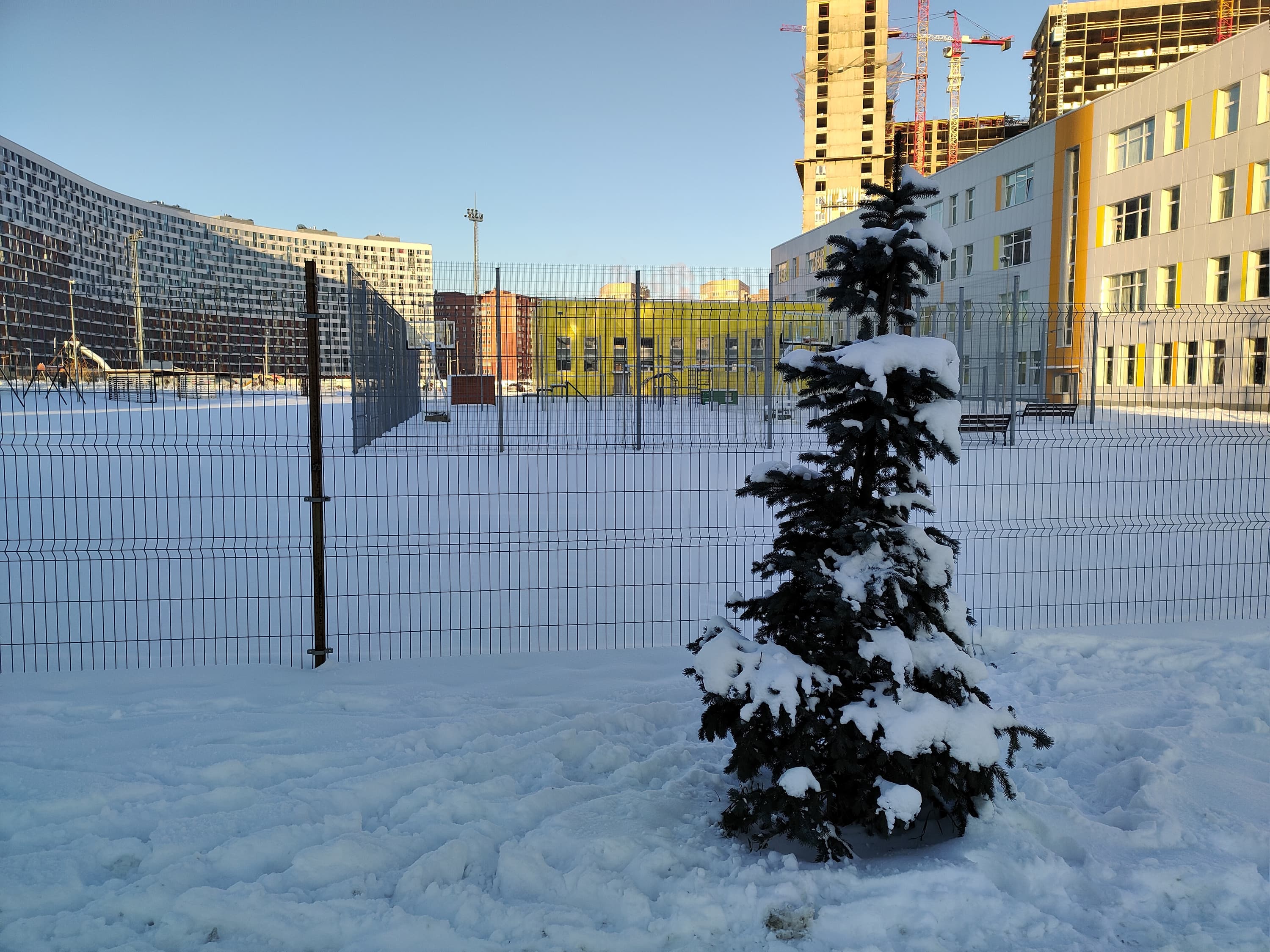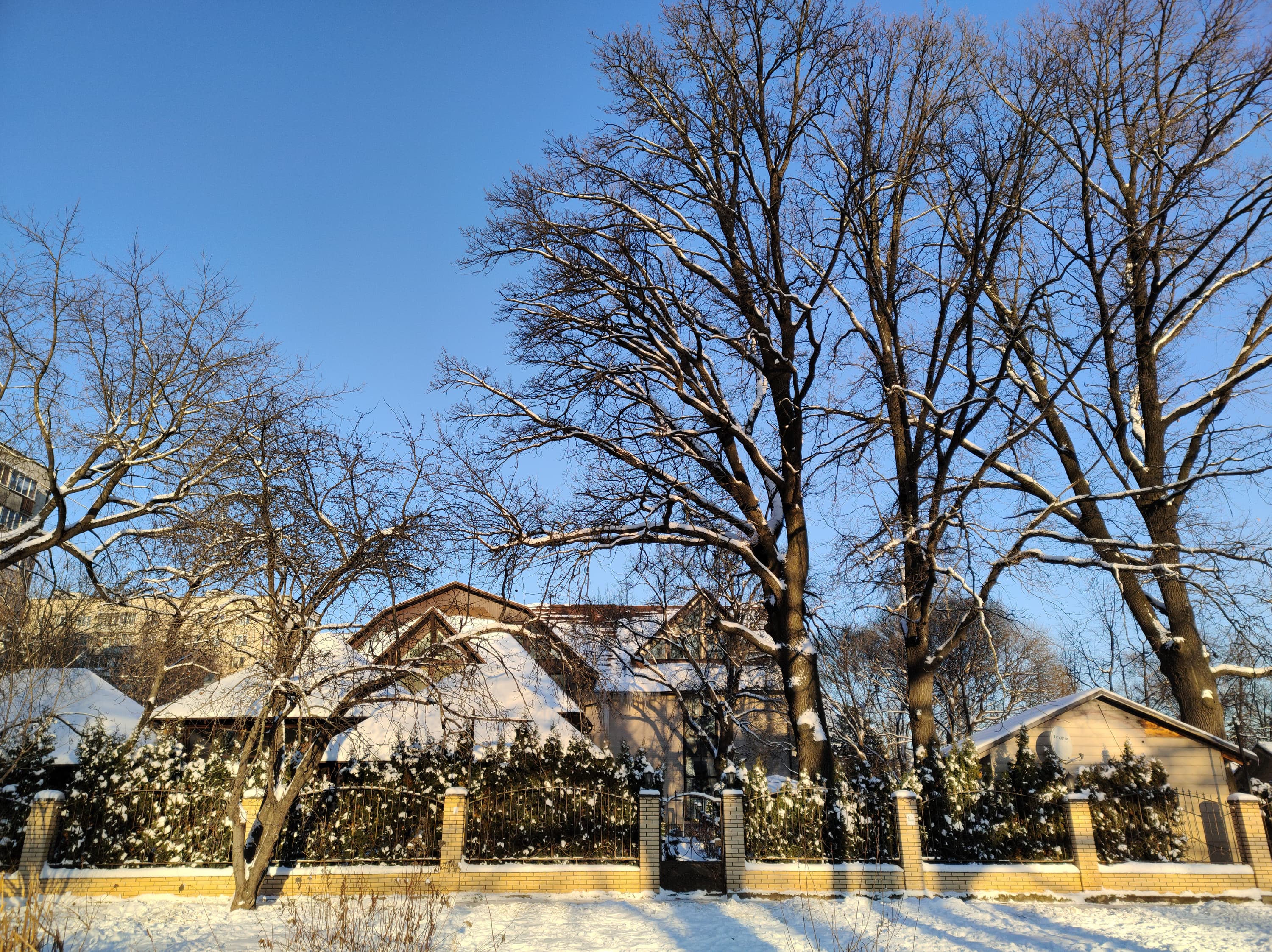 Широкоугольный модуль ожидаемо обеспечивает более низкую детализацию, к краям кадра резкость заметно падает, но все-таки в целом картинка не провальная. Баланс белого иногда не справляется с обилием снега и уходит в синий спектр. Динамический диапазон узковат, заметны завалы в тенях. В целом, камера, конечно, невысокого уровня, но и не такого ужасного, как у бюджетных смартфонов.