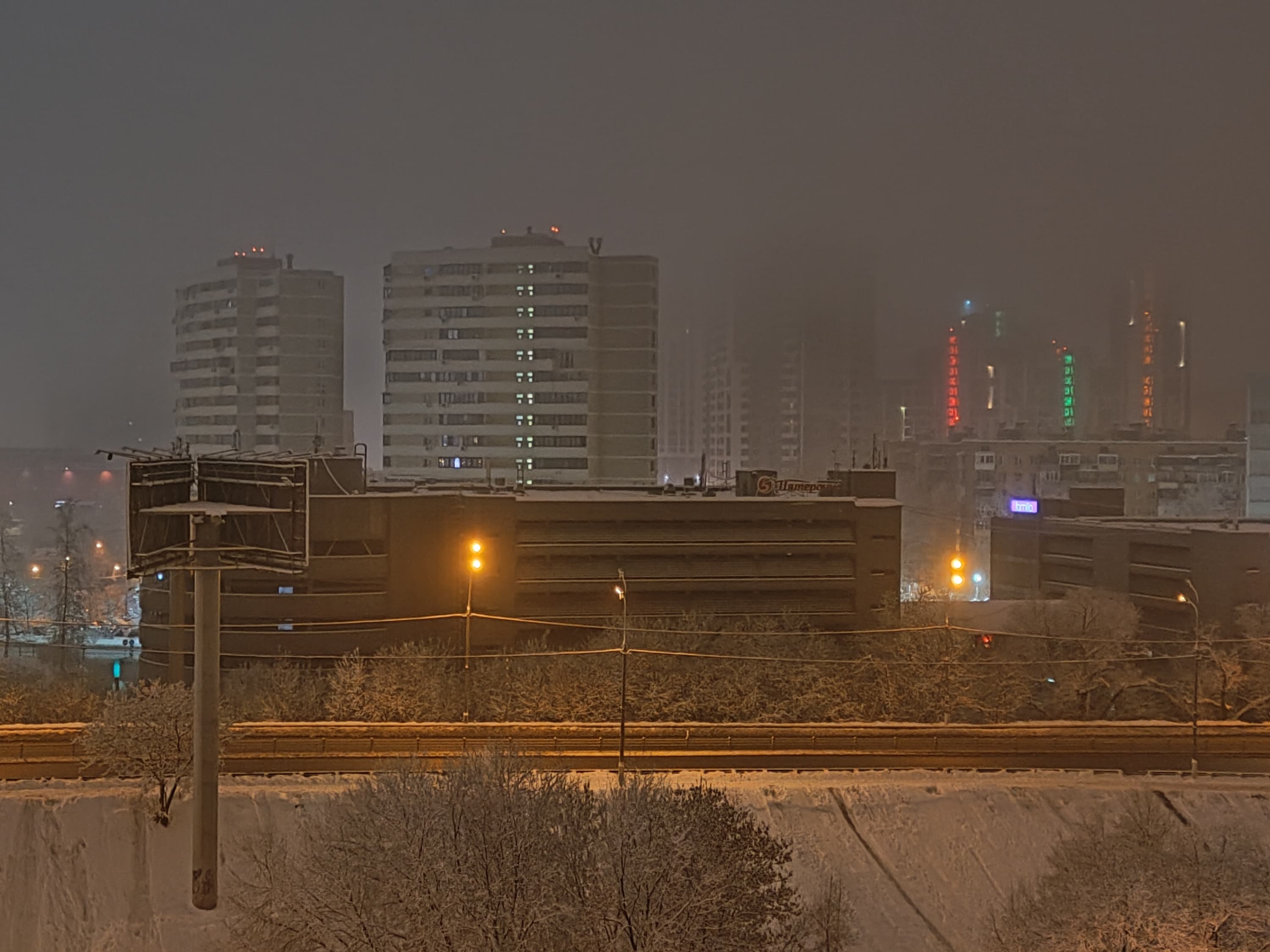 В режиме ночной съемки доступны все 4 варианта масштабирования: 0,6×, 1×, 2× и 5×. Однако что-то более-менее приятное для глаза можно получить ночью лишь на основную камеру без зума.