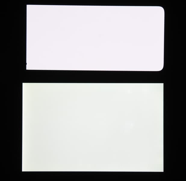 Экран характеризуется великолепными углами обзора. Правда, белый цвет при отклонении даже на небольшие углы приобретает легкий сине-зеленый или розоватый оттенок, но черный цвет остается просто черным под любыми углами. Он настолько черный, что параметр контрастности в данном случае неприменим. Для сравнения приведем фотографии, на которых на экраны Realme GT Neo 2 и Nexus 7 выведены одинаковые изображения, при этом яркость экранов изначально установлена примерно на 200 кд/м², а цветовой баланс на фотоаппарате принудительно переключен на 6500 К.