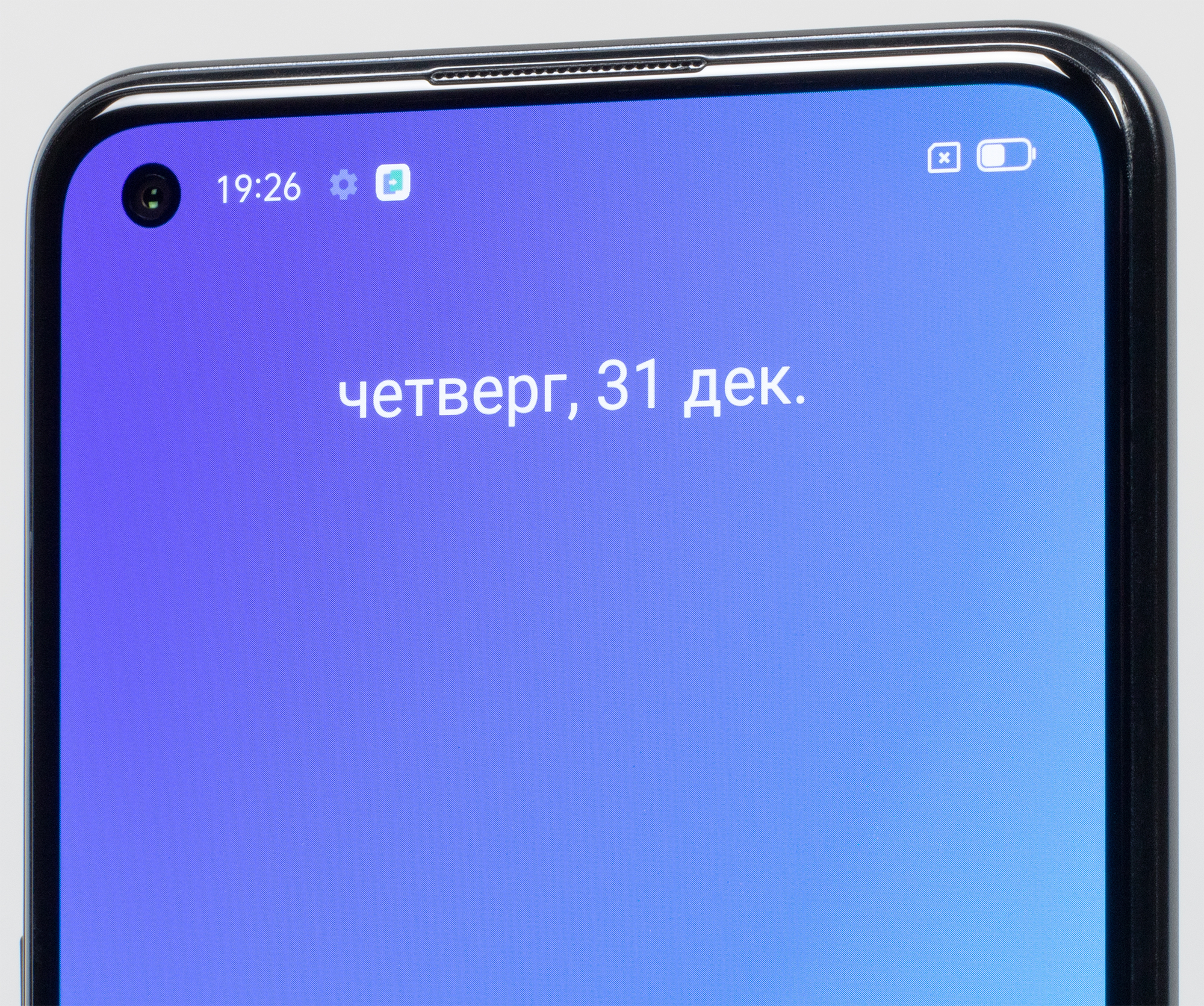 Фронтальная камера установлена за круглым вырезом в углу матрицы экрана, где ей самое место.