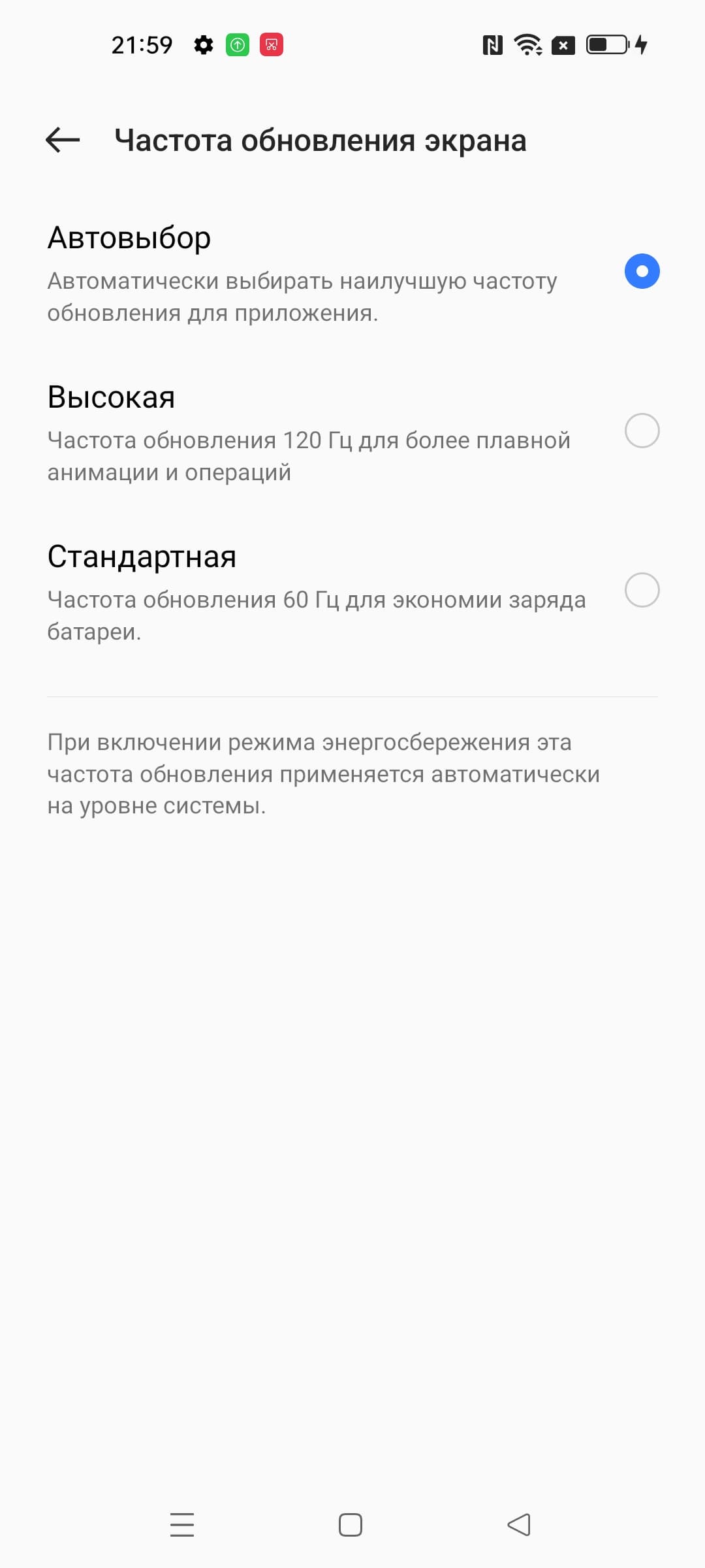 В настройках экрана можно включить режим с повышенной до 120 Гц частотой обновления: