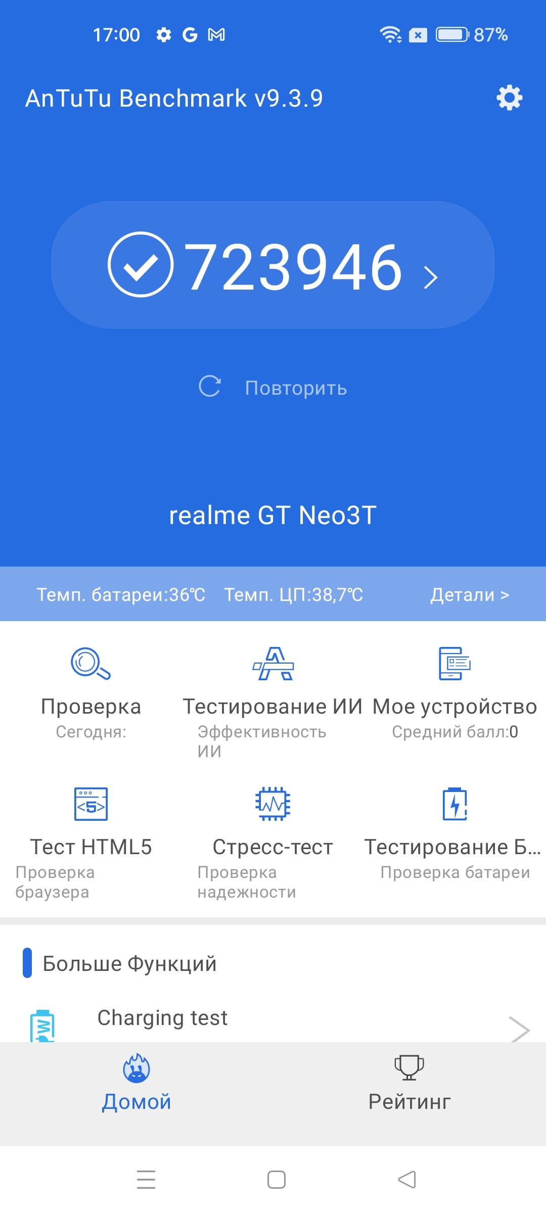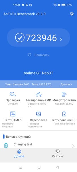 Тестирование в комплексных тестах AnTuTu и GeekBench: