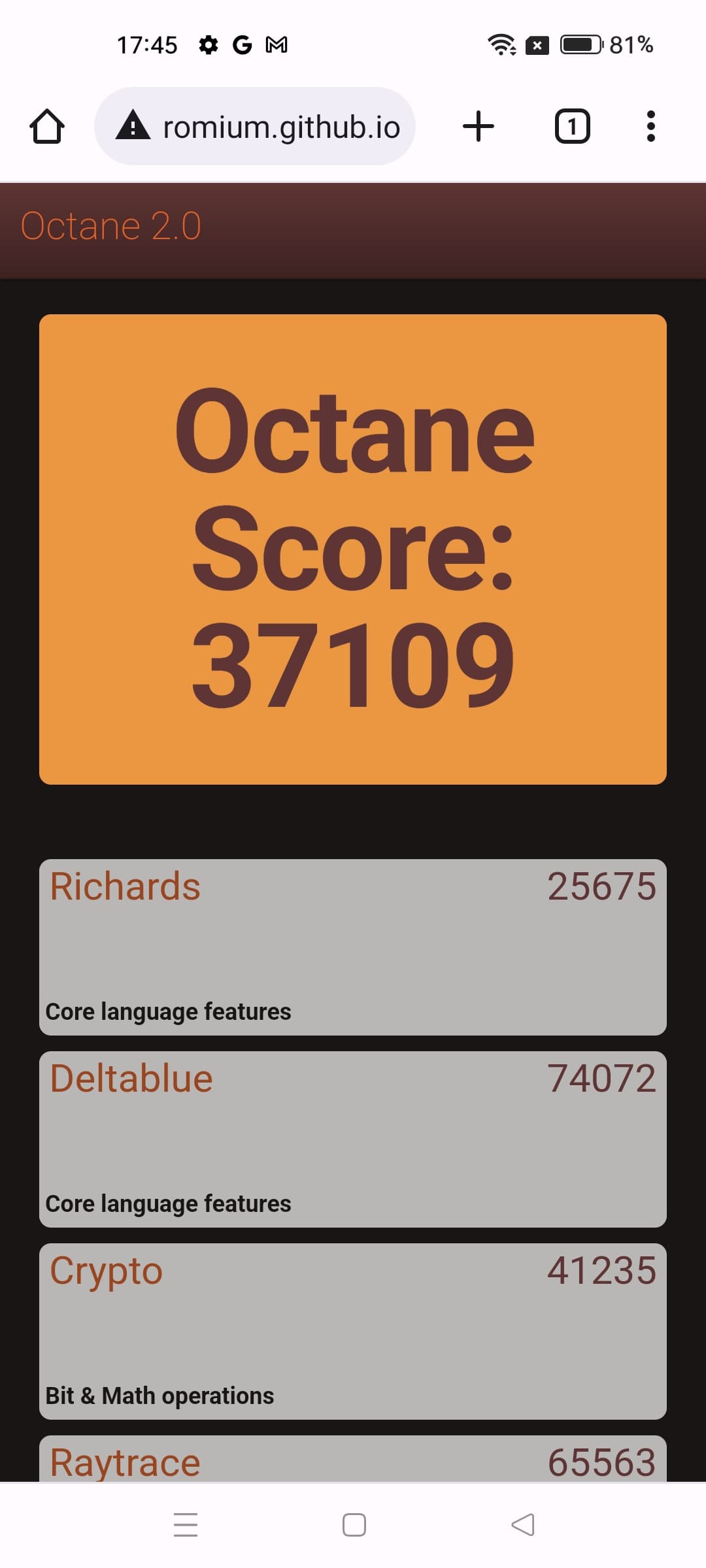 | Google Octane 2 (больше — лучше) | 37109 | 34861 | 14293 | 26144 | 21754 |