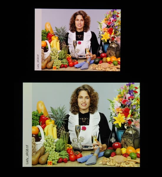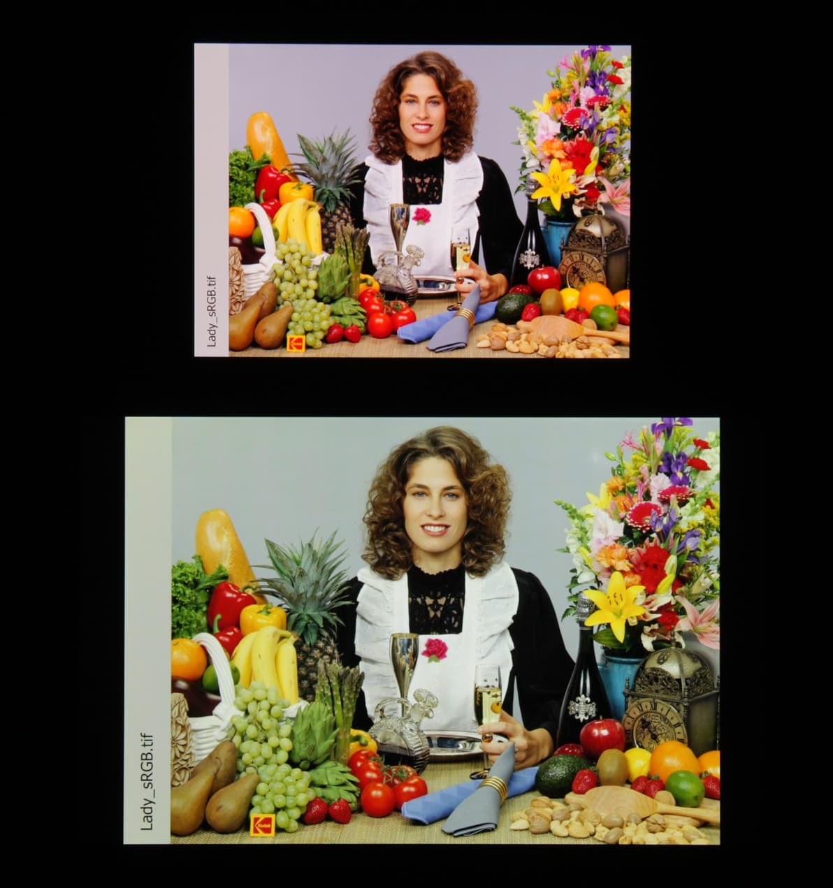 Отметим, что на экранах с широким цветовым охватом без соответствующей коррекции цвета обычных изображений, оптимизированных для устройств sRGB, выглядят неестественно насыщенными. Отсюда и рекомендация: в большинстве случаев смотреть кино, фотографии и все естественное лучше при выборе профиля Естественный. Профиль Яркие цвета (или Кинематографические) уместен при просмотре материала с охватом DCI-P3, принятым в цифровом кинематографе, но в быту встречающимся редко.