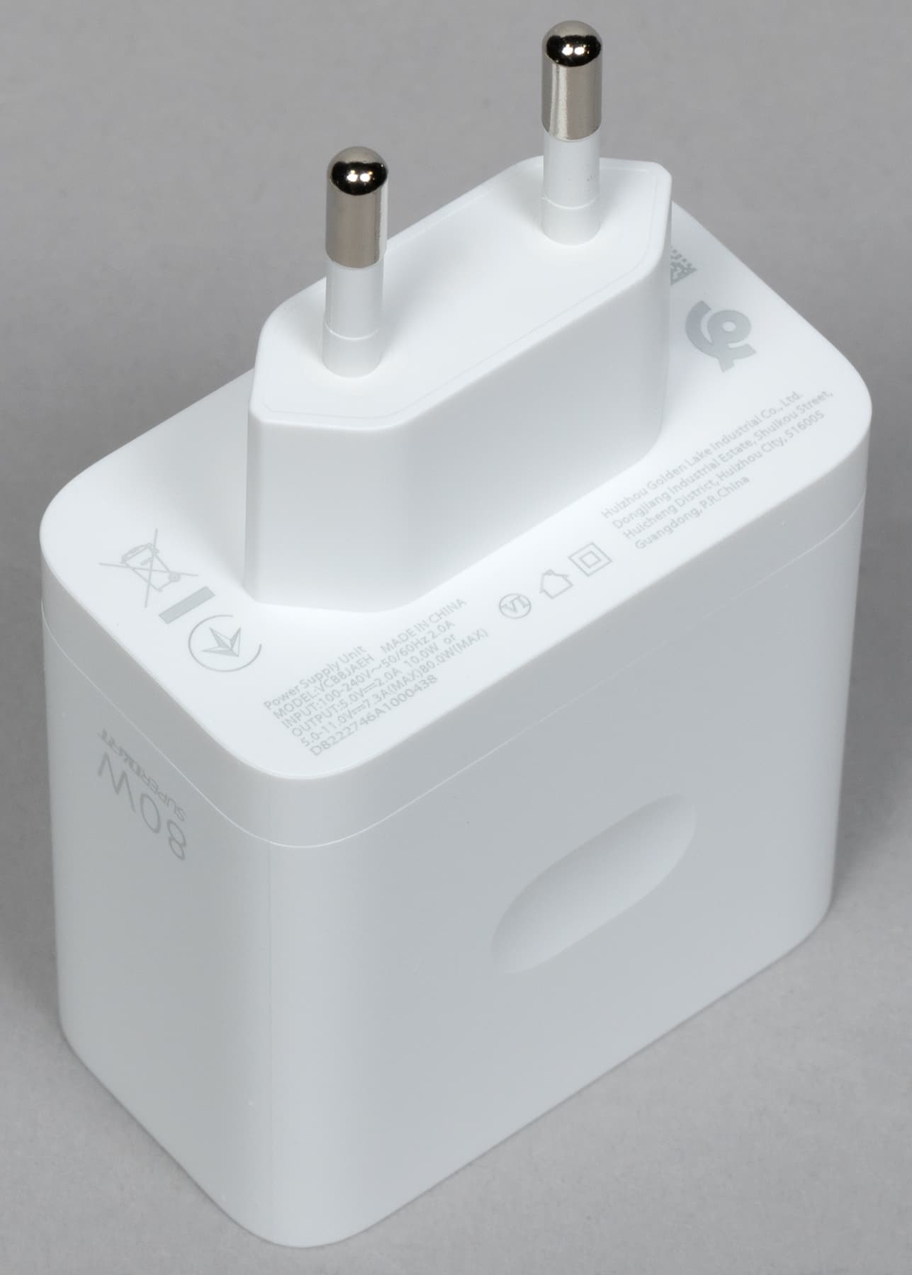 В комплекте со смартфоном идут защитный чехол, соединительный кабель USB-C и сетевое зарядное устройство с выходной мощностью 80 Вт.