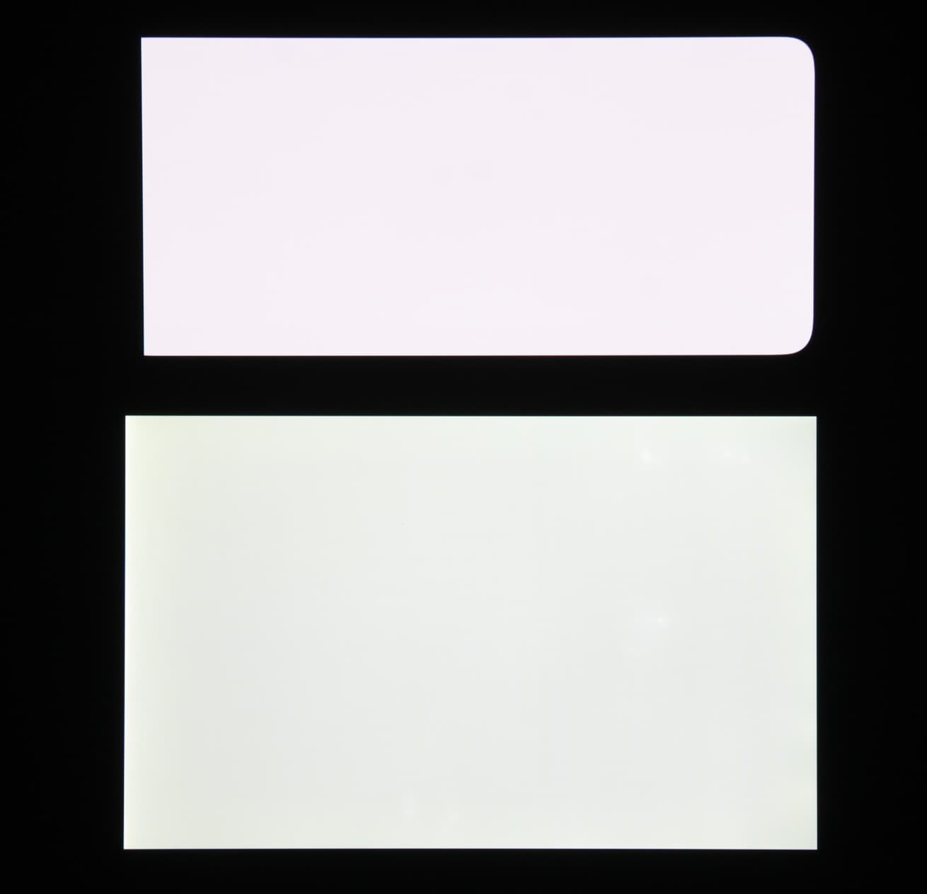 Яркость под углом у обоих экранов заметно уменьшилась (чтобы избежать сильного затемнения, выдержка увеличена в сравнении с предыдущими фотографиями), но в случае Realme GT Neo 3T падение яркости меньше. В итоге при формально одинаковой яркости экран Realme GT Neo 3T визуально выглядит гораздо более ярким (в сравнении с ЖК-экранами), так как на экран мобильного устройства часто приходится смотреть как минимум под небольшим углом.