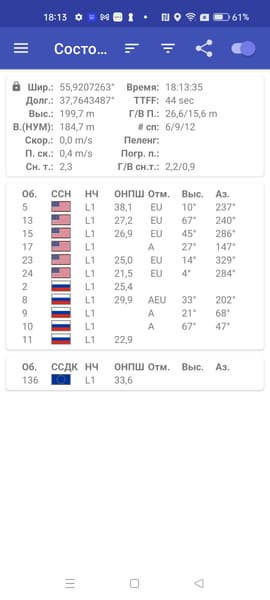 Навигационный модуль работает с GPS (с A-GPS), Глонасс, BDS, Galileo, QZSS, NavIC. Первые спутники при холодном старте обнаруживаются быстро, точность позиционирования не вызывает претензий. Также на месте все необходимые датчики.