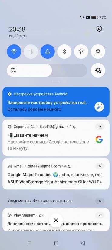 К тому же, абсолютно отсутствует навязчивая реклама, само появление которой в коммерческих аппаратах — вопиющее безобразие, воплощенное в жизнь Xiaomi и затем подхваченное другими. Также здесь нет и неприятной выдумки с разделением шторки на две части в зависимости от места оттягивания. Зато есть игровой режим, а также у смартфонов серии GT имеется режим GT, который помогает оптимизировать работу ресурсоемких приложений для повышения частоты кадров в играх, активирует плавный режим изображения и поддерживает специальные звуки и анимации во время использования аппарата. На месте фирменный магазин Google Play и доступ к сервисам Google.