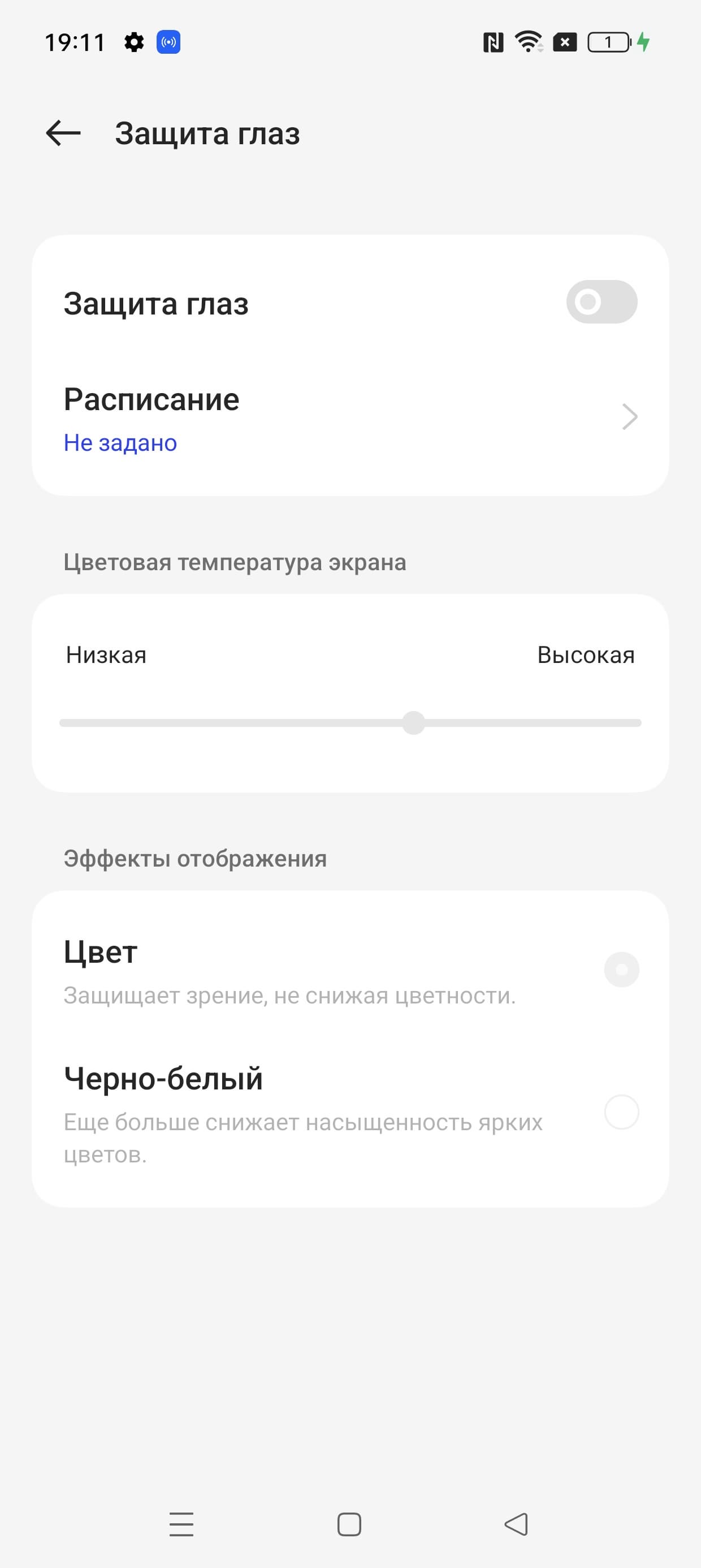 В этом устройстве есть возможность скорректировать цветовой баланс с помощью регулировки оттенка холодный—теплый. Но особого смысла это делать нет, достаточно выбрать профиль Естественный. Также в настройках можно уменьшить интенсивность синей компоненты.