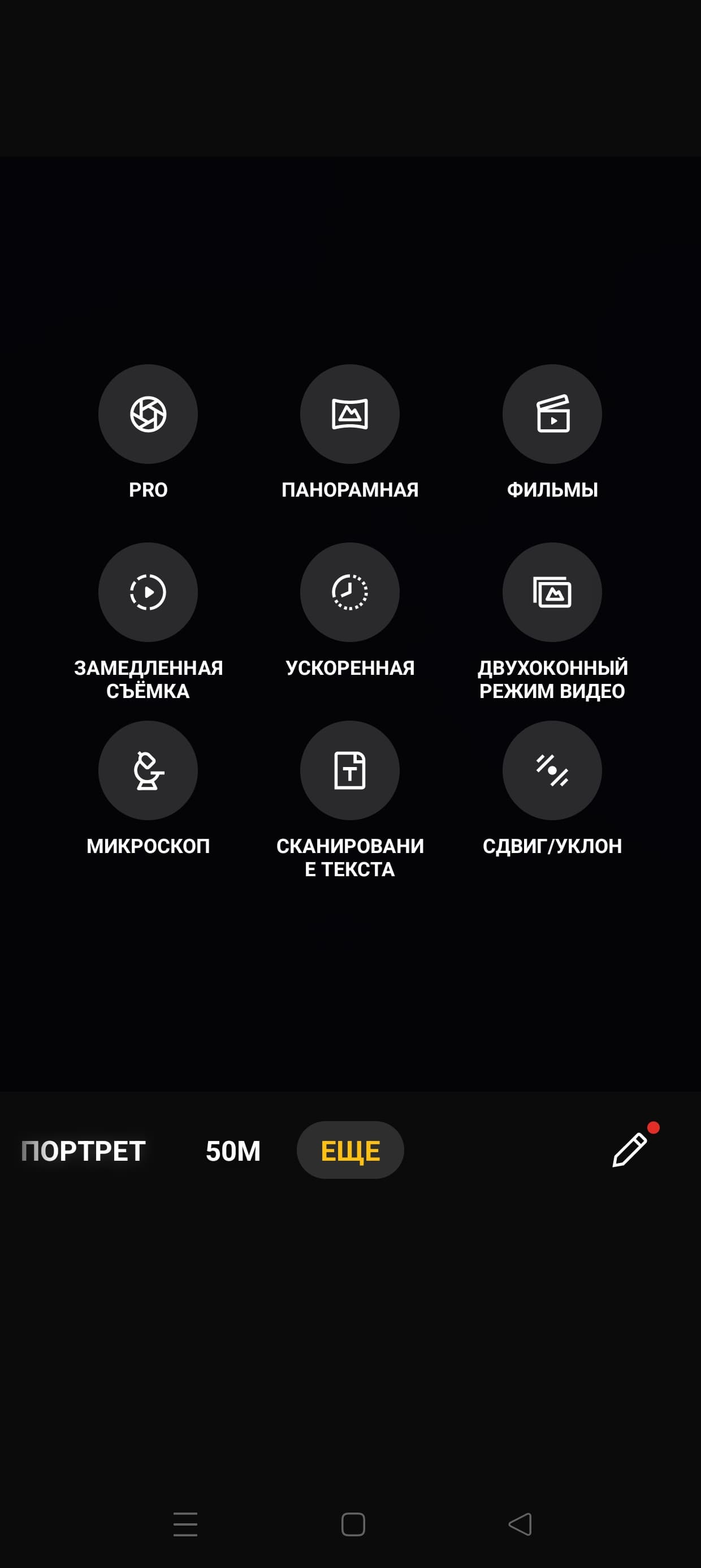 - Камеры 50 Мп + 8 Мп (широкий угол) + 2 Мп (микроскоп), видео 4K@60 fps