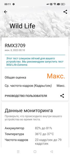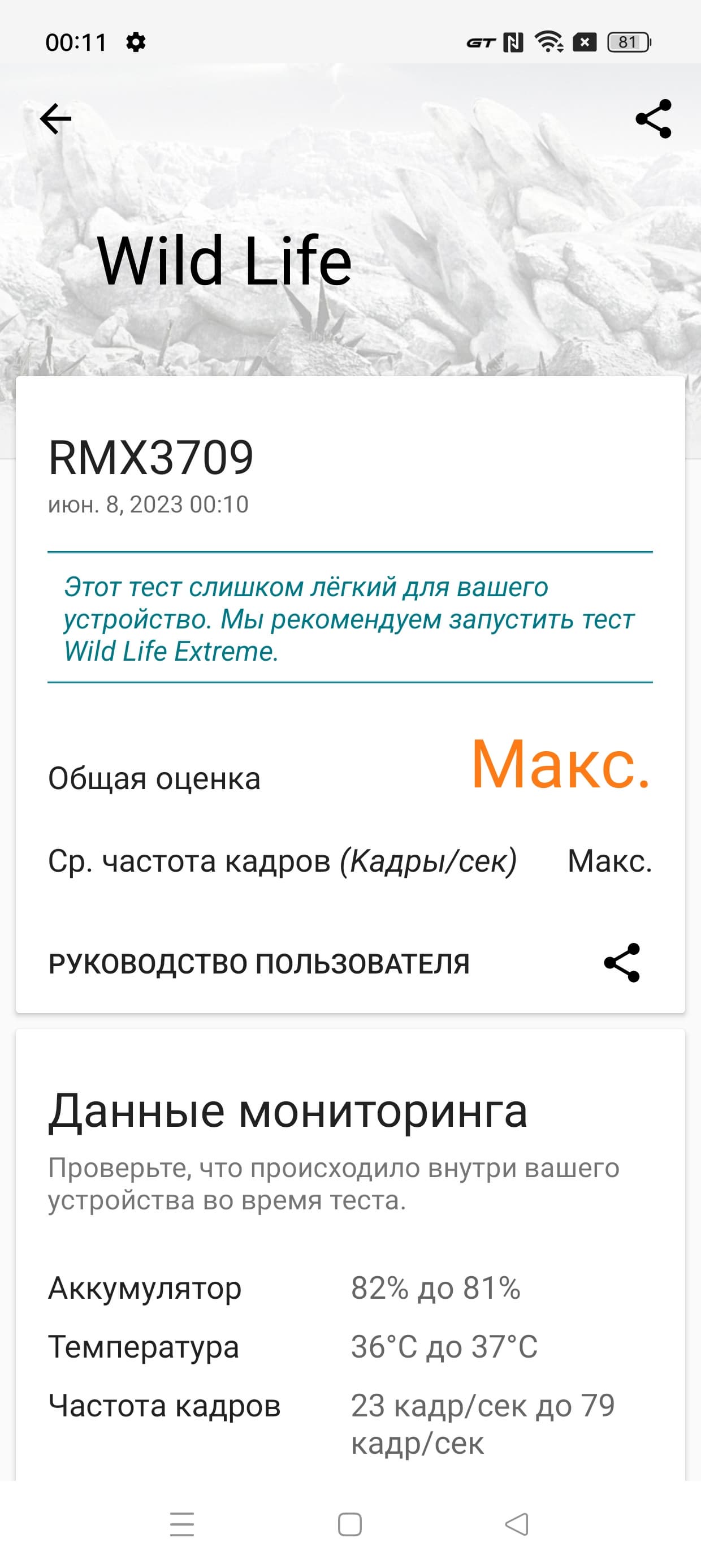 Qualcomm SM8550-AC Snapdragon 8+ Gen1 — это мобильная платформа топового уровня, она изготовляется по 4-нанометровому техпроцессу. На текущий момент это уже не флагман, но всё равно ее мощи хватает для любых без исключения задач и для самых требовательных игр. Для такого смартфона, как Realme GT3, наличие столь мощной аппаратной платформой является одним из ключевых факторов («киллер-фичей»), привлекающим к нему самое пристальное внимание.