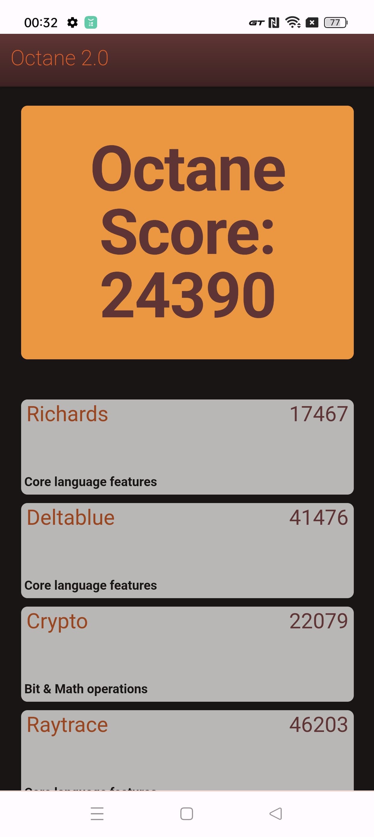 | Google Octane 2 (больше — лучше) | 24390 | 25629 | 30849 | 36245 | 54735 |