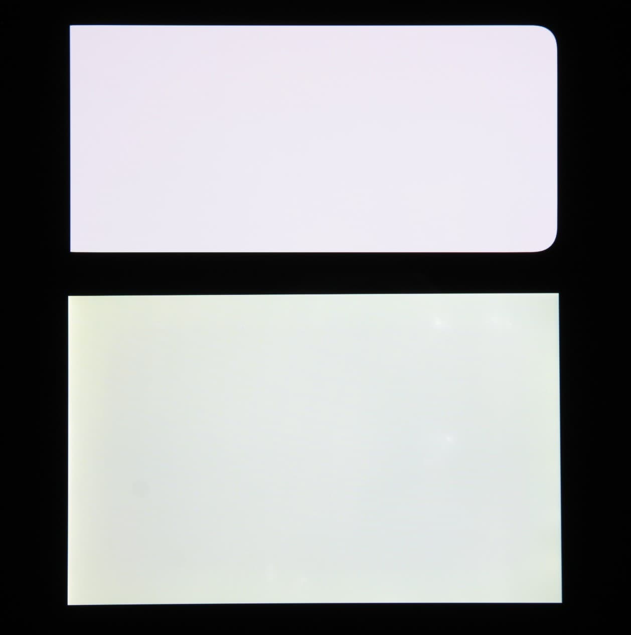Яркость под углом у обоих экранов заметно уменьшается, но в случае смартфона падение яркости выражено гораздо меньше. В итоге при формально одинаковой яркости экран этого смартфона визуально выглядит гораздо более ярким (в сравнении с ЖК-экранами), так как на экран мобильного устройства часто приходится смотреть как минимум под небольшим углом.