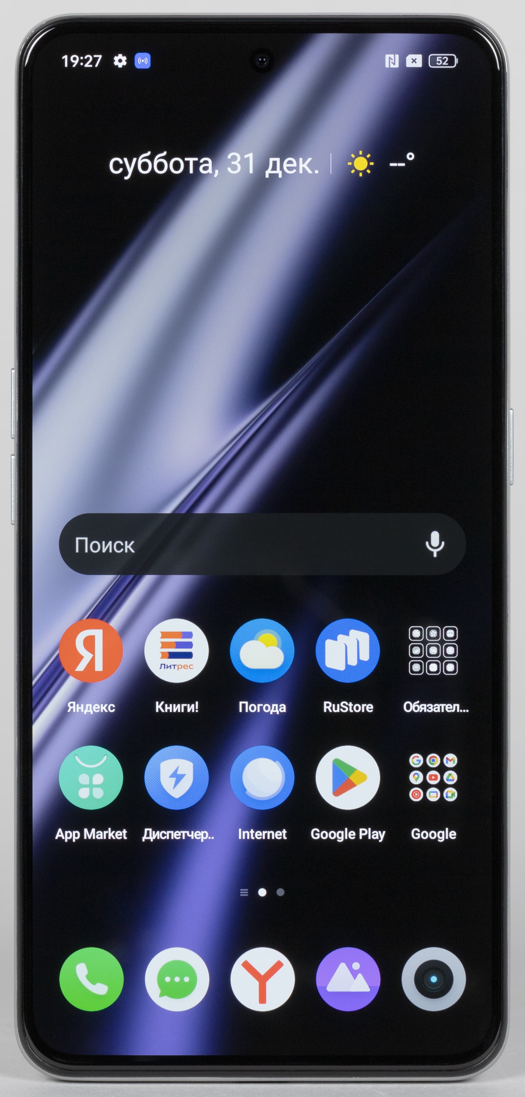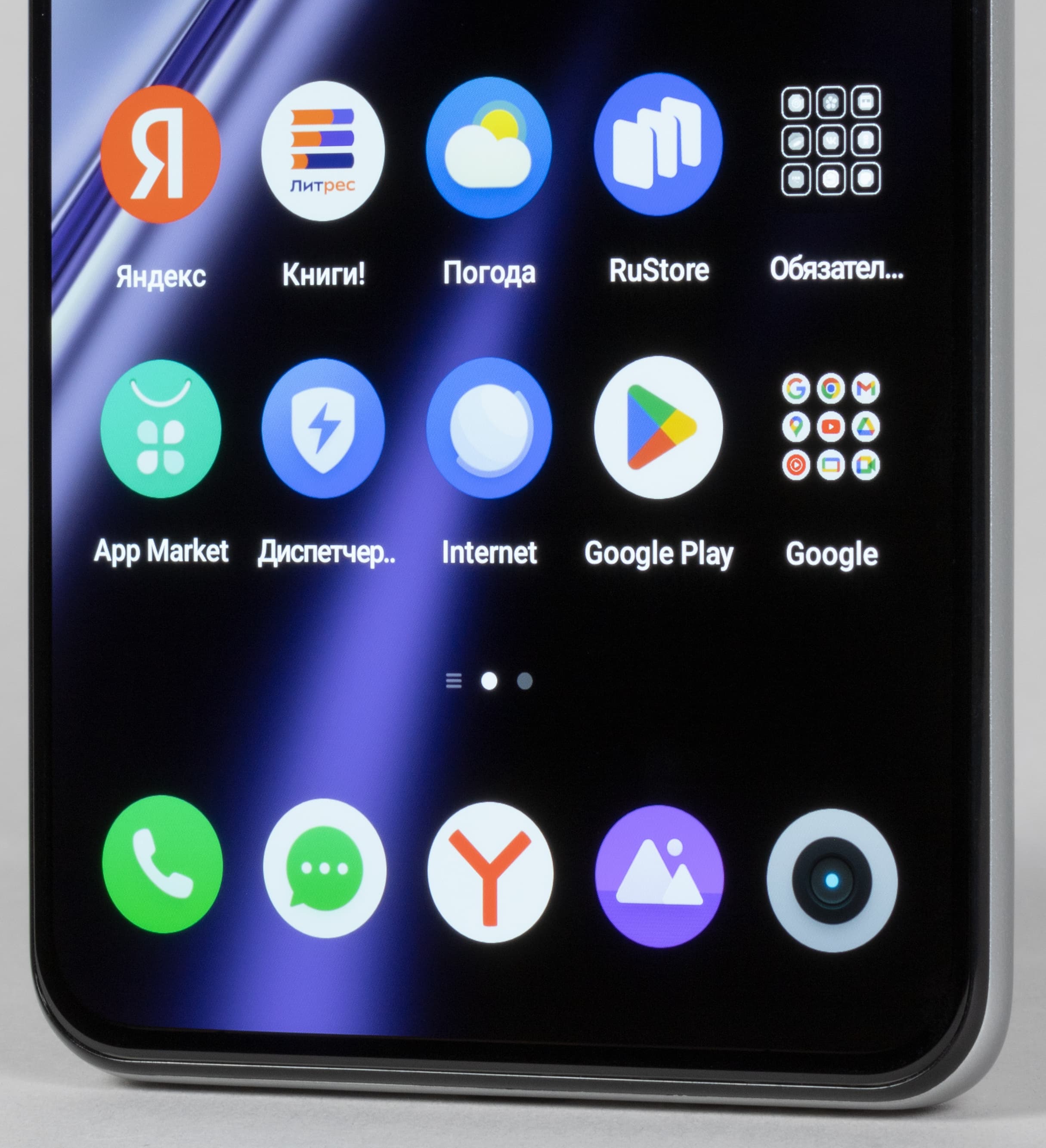 В качестве программной платформы смартфон Realme GT3 использует версию ОС Android 13 с собственной оболочкой Realme UI 4.0. Это добротный интерфейс, лаконичный и логичный, без малейших загрязнений рекламой — один из наиболее приятных европейскому взгляду китайских интерфейсов с простой логикой и наименьшим количеством изменений относительно оригинального Android. Шторка уведомлений не разделена на две части. Доступ к сервисам Google и магазину Google Play на месте.