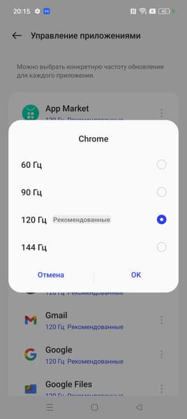 Точнее, частота может повышаться максимум до 90, 120 или 144 Гц в зависимости от того, что выбрано в настройках для каждого приложения.