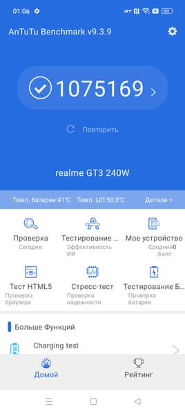 Тестирование в комплексных тестах AnTuTu и GeekBench: