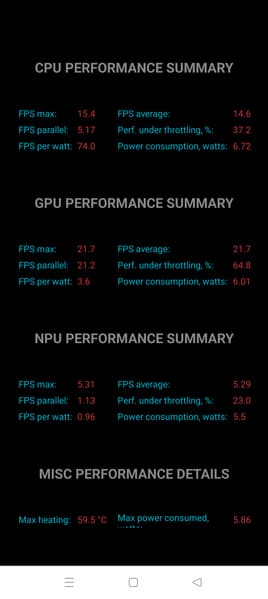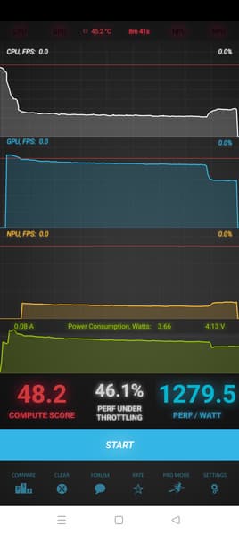 Тест на снижение производительности при нагреве мы проводим с помощью программы Burnout Benchmark, которая позволяет нагружать CPU, GPU и NPU: