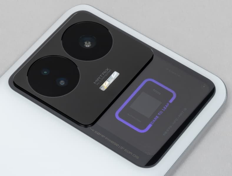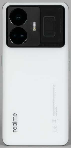 Смартфон оборудован набором из трех тыльных камер — основной, широкоугольной и «микроскопом». Камеры с длиннофокусным объективом, реализующим оптический зум, флагман Realme не получил.