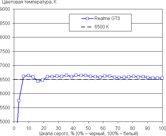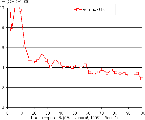 (Самые темные области шкалы серого в большинстве случаев можно не учитывать, так как там баланс цветов не имеет большого значения, да и погрешность измерений цветовых характеристик на низкой яркости высокая.)