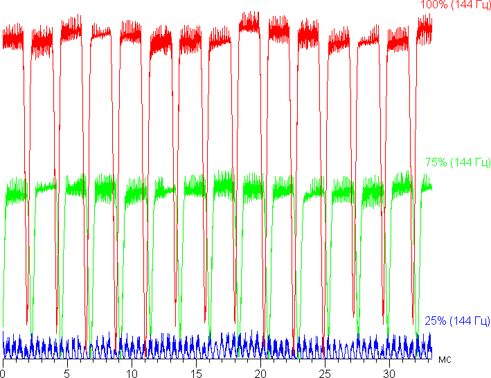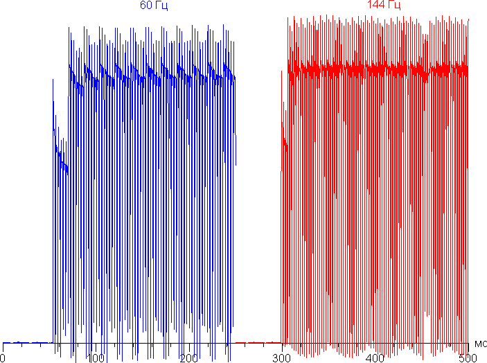 В режиме 144 Гц плавность прокрутки списков меню заметно повышается. Посмотрим, изменится ли при этом характер модуляции: