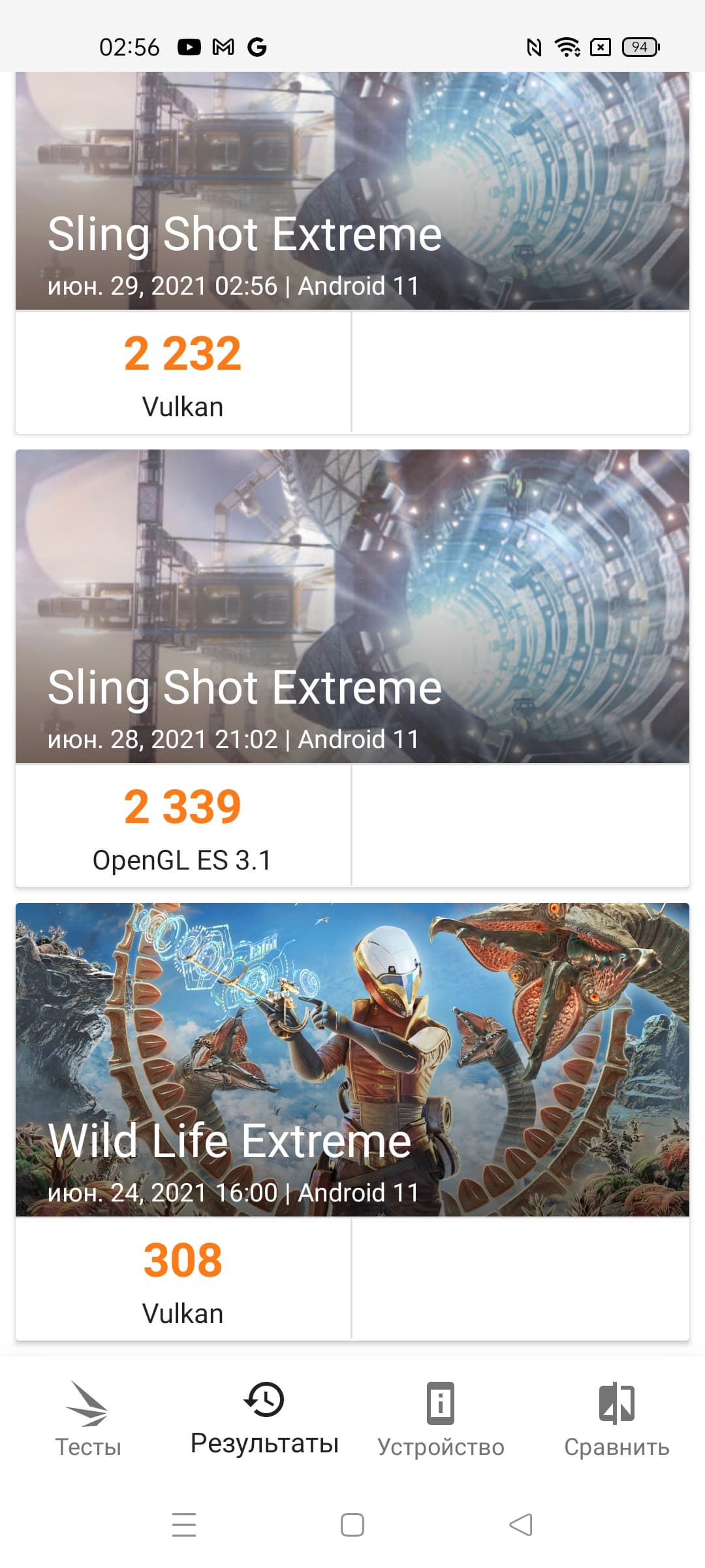 | 3DMark Sling Shot Ex OpenGL ES 3.1 (больше — лучше) | 2339 | 1474 | 1428 | 1155 | 2708 |