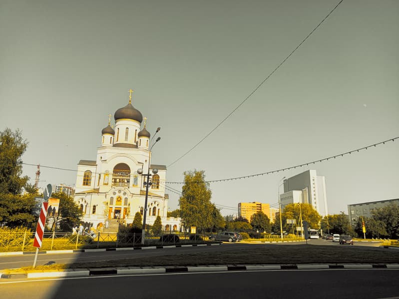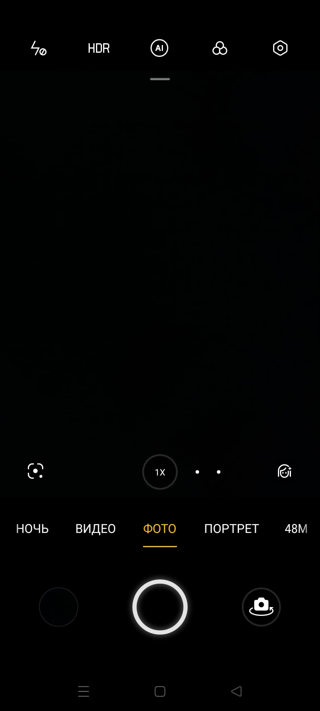 Интерфейс управления съемкой свой собственный. Он в целом похож у всех смартфонов Realme, но здесь есть кое-какие упрощения относительно интерфейса более дорогих устройств. Например, в режиме видеосъемки здесь нет никакого выдвигающегося сверху вниз меню с выбором разрешений и частоты кадров. Зато очень удобно переключаться между разрешениями 48 и 12 Мп в фоторежиме — соответствующий пункт выведен на самое видное место на экране видоискателя, в прокручиваемом нижнем меню. Из дополнительных режимов есть, как обычно, автоматический HDR, цветовые фильтры, отключаемое улучшение картинки с помощью ИИ. Возможность сохранения снимков в RAW не появляется даже с переключением в ручной режим управления. Игрушечный Tilt-shift, кстати, здесь отсутствует.