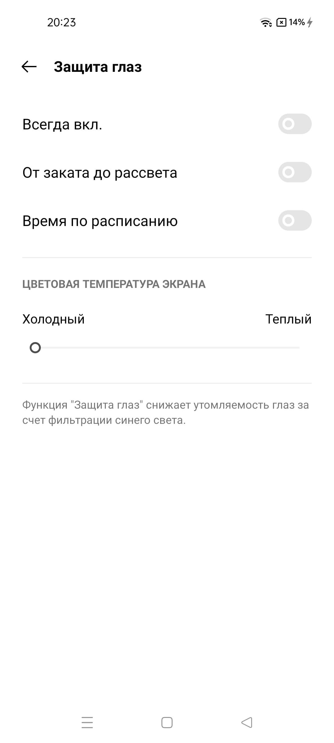 Также присутствует настройка, позволяющая снизить интенсивность синей компоненты.
