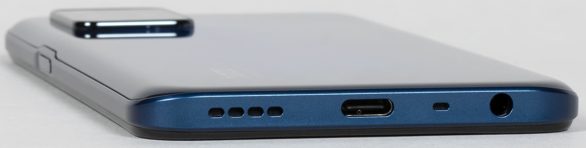 Снизу собраны разъем USB Type-C, динамик, разговорный микрофон, 3,5-миллиметровый выход для наушников.