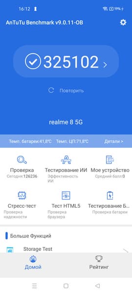| AnTuTu (v9.x) (больше — лучше) | 325102 | 283847 | 221274 | 219907 | 300841 |