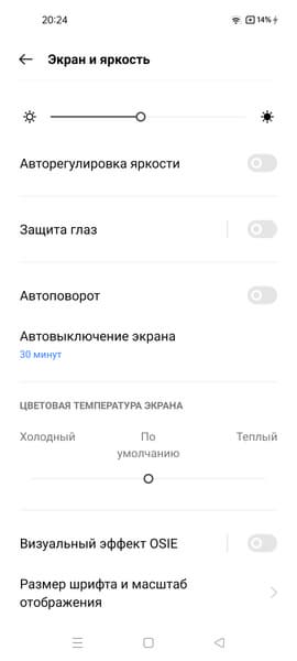 В настройках экрана можно включить режим с повышенной до 90 Гц частотой обновления. В режиме 90 Гц плавность прокрутки списков меню заметно повышается.