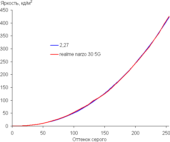 Видно, что цвета не сильно изменились у обоих экранов, но у Realme Narzo 30 5G контраст уменьшился в большей степени из-за большего высветления черного.
