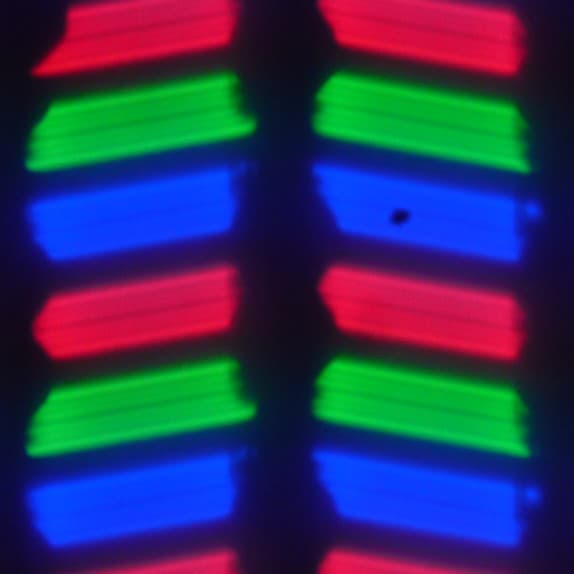 В данном смартфоне используется матрица типа IPS. Микрофотографии демонстрируют типичную для IPS структуру субпикселей: