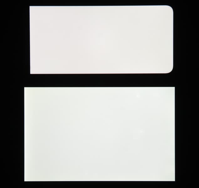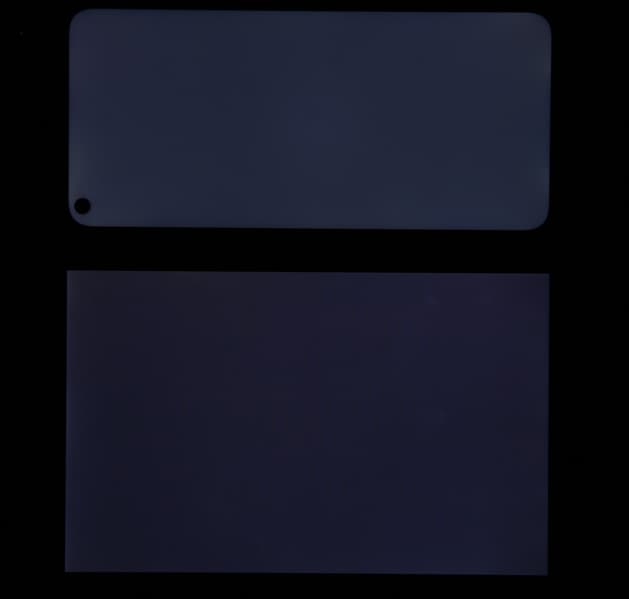 При перпендикулярном взгляде равномерность черного поля средняя (для наглядности яркость подсветки на смартфоне выведена на максимум):