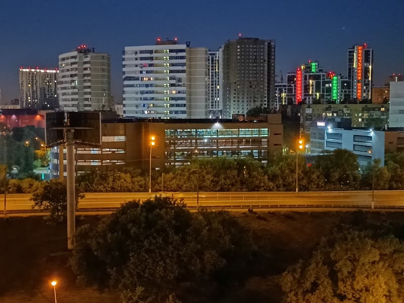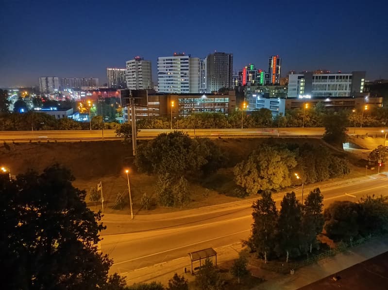 В ночном режиме шум уже не скроешь, но он мелкий, равномерный и бесцветный, почти не портит изображение. В целом качество получается очень приличное, и экспозиция не задрана, ночная картинка не высветлена до неузнаваемости.